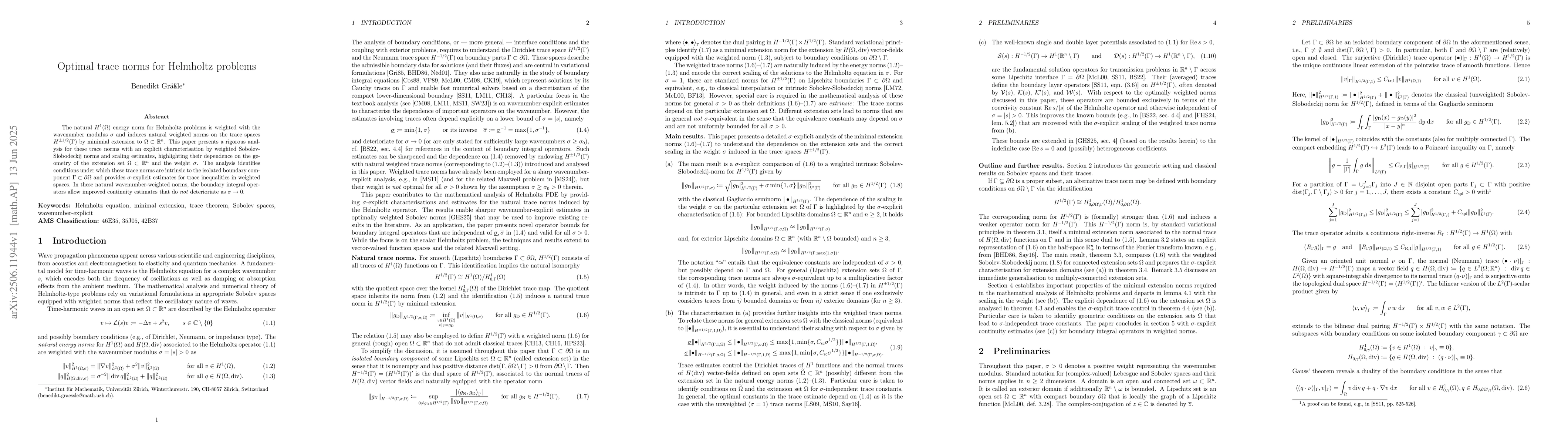 This paper rigorously analyzes weighted trace norms for Helmholtz problems, characterizing them via weighted Sobolev-Slobodeckij norms. It identifies conditions under which these norms are intrinsic to boundary components and provides estimates for trace inequalities in weighted spaces. The analysis shows improved continuity estimates for boundary integral operators that don't worsen as the wavenumber approaches zero.