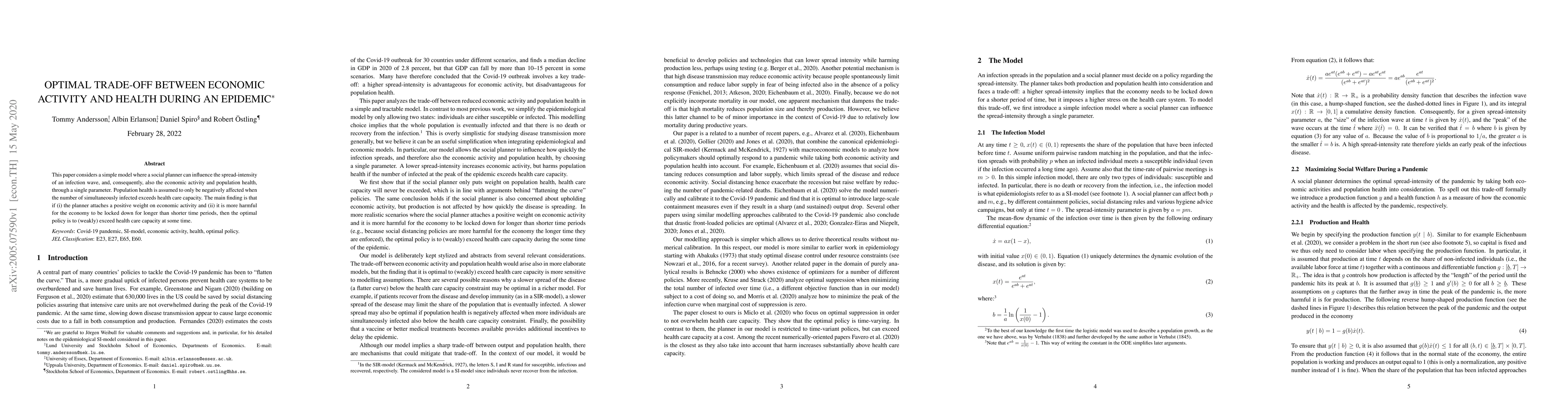 This paper considers a simple model where a social planner can influence the spread-intensity of an infection wave, and, consequently, also the economic activity and population health, through a single parameter. Population health is assumed to only be negatively affected when the number of simultaneously infected exceeds health care capacity. The main finding is that if (i) the planner attaches a positive weight on economic activity and (ii) it is more harmful for the economy to be locked down for longer than shorter time periods, then the optimal policy is to (weakly) exceed health care capacity at some time.