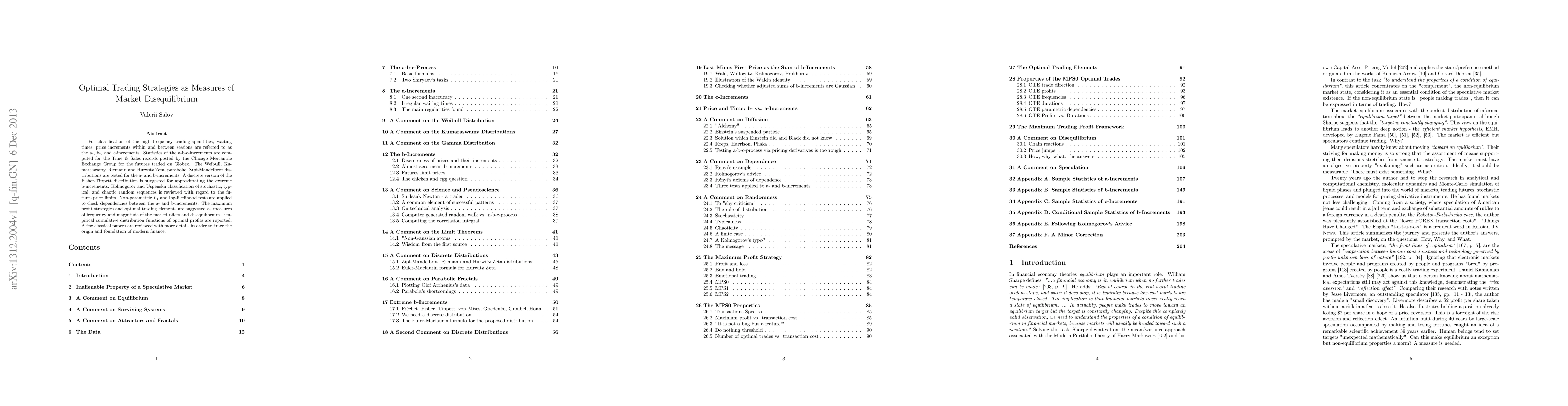 This research paper analyzes high-frequency trading data from the Chicago Mercantile Exchange to identify optimal trading strategies that reflect market disequilibrium. It proposes new statistical distributions and tests for measuring frequency and magnitude of market offers and chaos in futures prices.