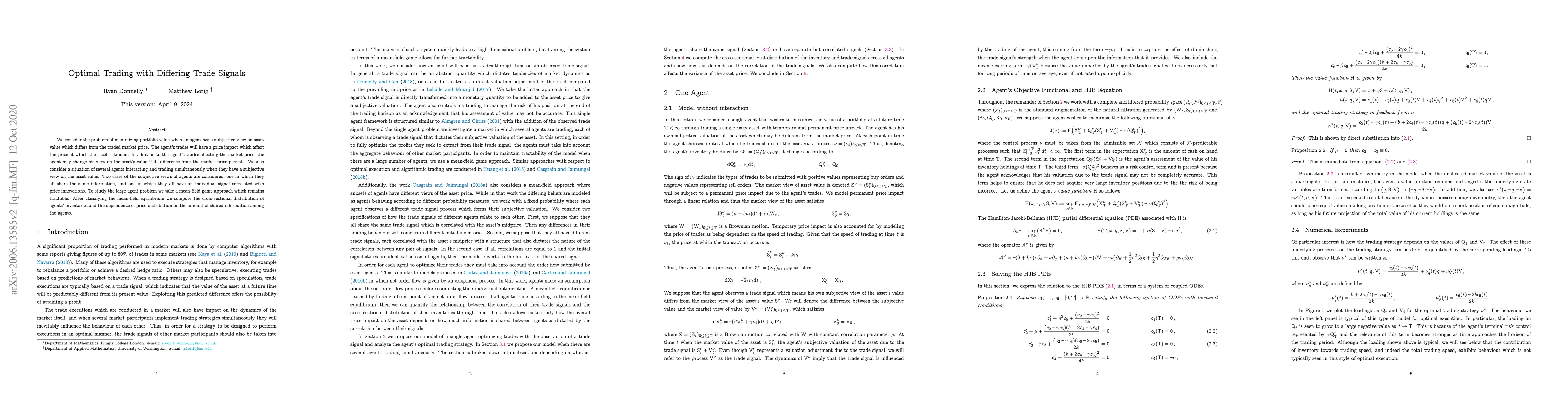 We consider the problem of maximizing portfolio value when an agent has a subjective view on asset value which differs from the traded market price. The agent's trades will have a price impact which affect the price at which the asset is traded. In addition to the agent's trades affecting the market price, the agent may change his view on the asset's value if its difference from the market price persists. We also consider a situation of several agents interacting and trading simultaneously when they have a subjective view on the asset value. Two cases of the subjective views of agents are considered, one in which they all share the same information, and one in which they all have an individual signal correlated with price innovations. To study the large agent problem we take a mean-field game approach which remains tractable. After classifying the mean-field equilibrium we compute the cross-sectional distribution of agents' inventories and the dependence of price distribution on the amount of shared information among the agents.