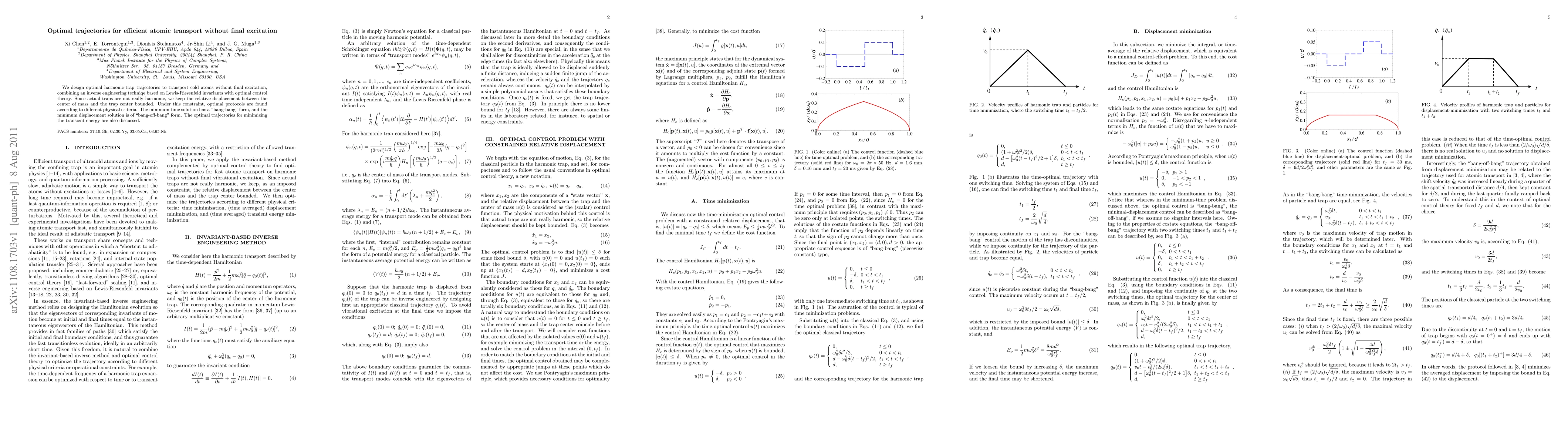 This paper develops optimal harmonic-trap trajectories for transporting cold atoms without final excitation, utilizing an inverse engineering technique based on Lewis-Riesenfeld invariants and optimal control theory. The study considers non-ideal traps and finds optimal protocols under various physical criteria, including minimum time and minimum displacement solutions.