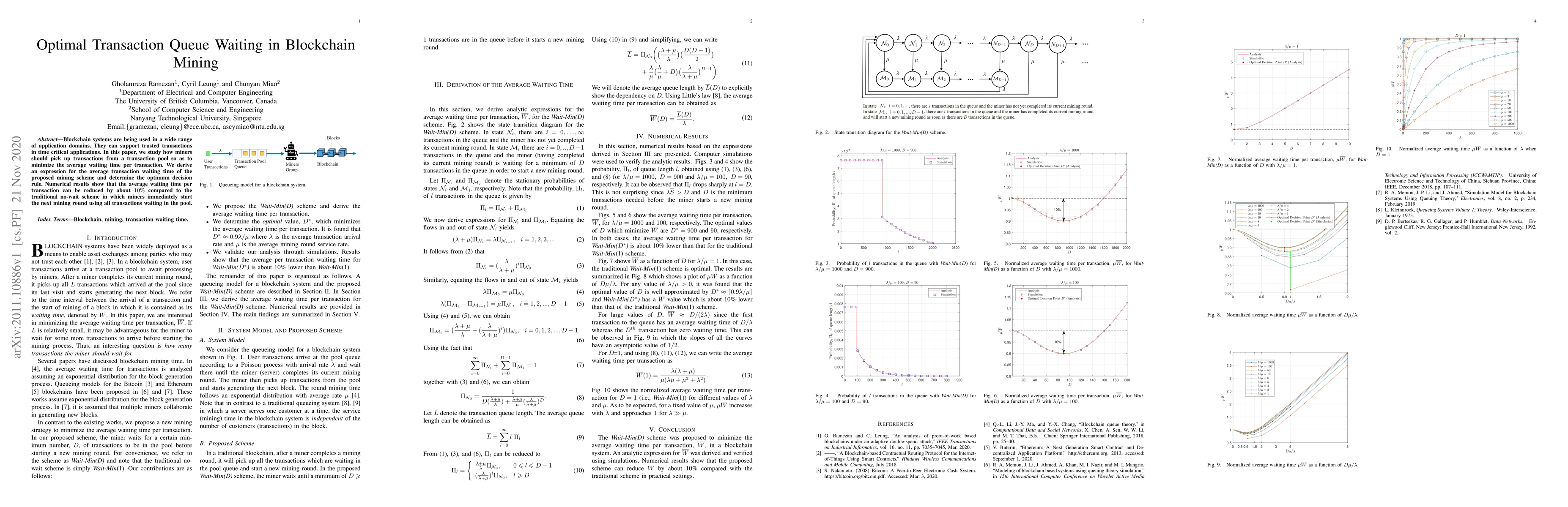 This paper proposes a mining scheme to optimize transaction queue waiting in blockchain systems, aiming to minimize average transaction waiting time. The study derives an optimal decision rule and demonstrates a 10% reduction in average waiting time compared to traditional no-wait schemes.