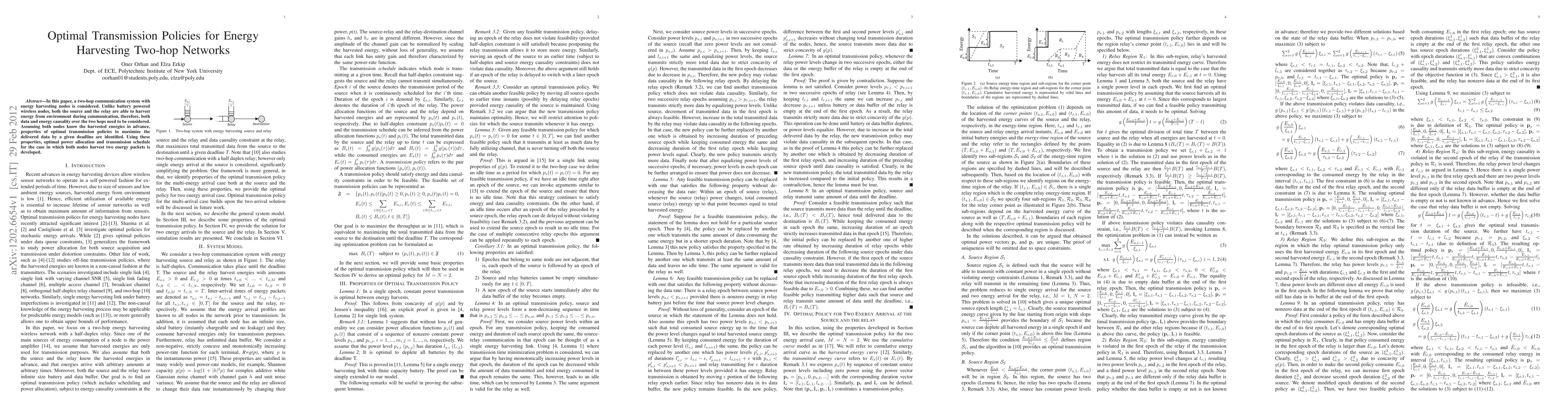 This paper explores optimal transmission policies for a two-hop network where both the source and relay nodes harvest energy from the environment. It identifies properties of optimal strategies to maximize data delivery within a given deadline, developing specific power allocation and transmission schedules for scenarios where both nodes harvest two energy packets.