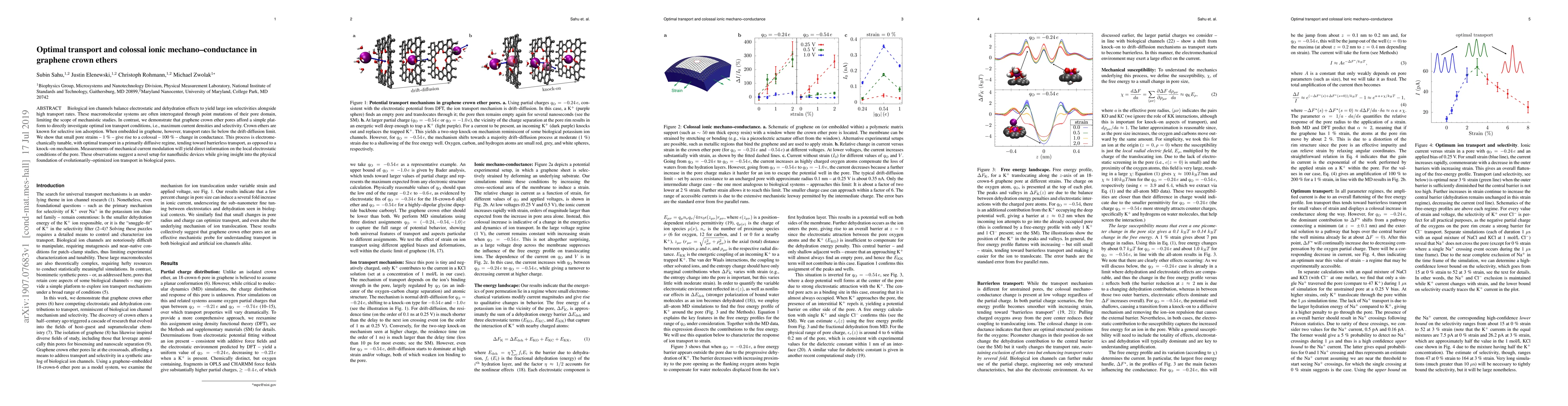 This paper investigates graphene crown ether pores to study optimal ion transport conditions, revealing a 100% increase in conductance through 1% pore strain. The electromechanical tunability suggests a novel platform for nanofluidic devices and insights into biological ion channels.