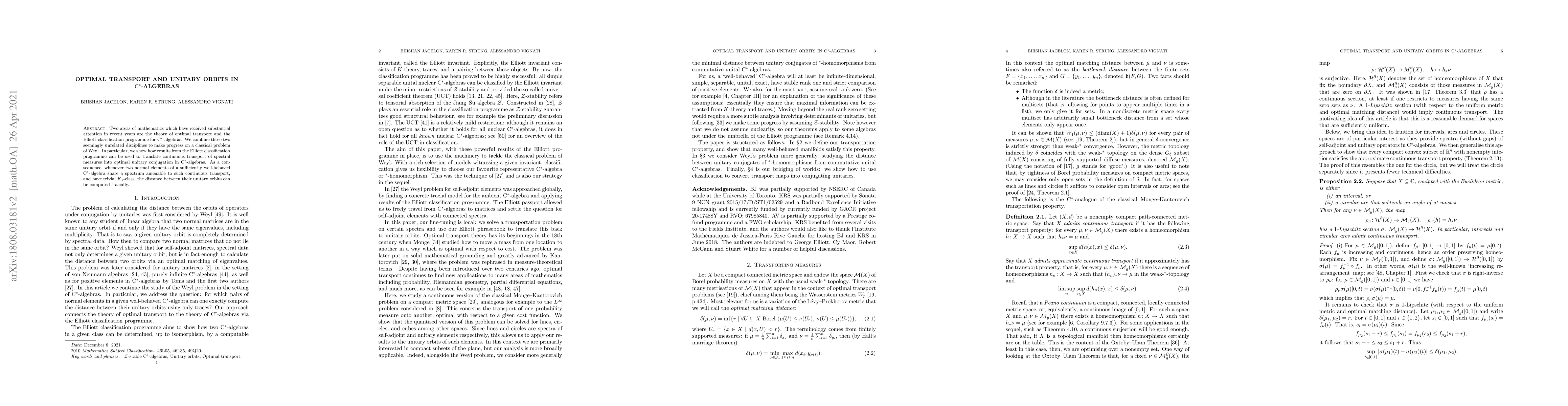 Two areas of mathematics which have received substantial attention in recent years are the theory of optimal transport and the Elliott classification programme for C*-algebras. We combine these two seemingly unrelated disciplines to make progress on a classical problem of Weyl. In particular, we show how results from the Elliott classification programme can be used to translate continuous transport of spectral measures into optimal unitary conjugation in C*-algebras. As a consequence, whenever two normal elements of a sufficiently well-behaved C*-algebra share a spectrum amenable to such continuous transport, and have trivial K_1-class, the distance between their unitary orbits can be computed tracially.