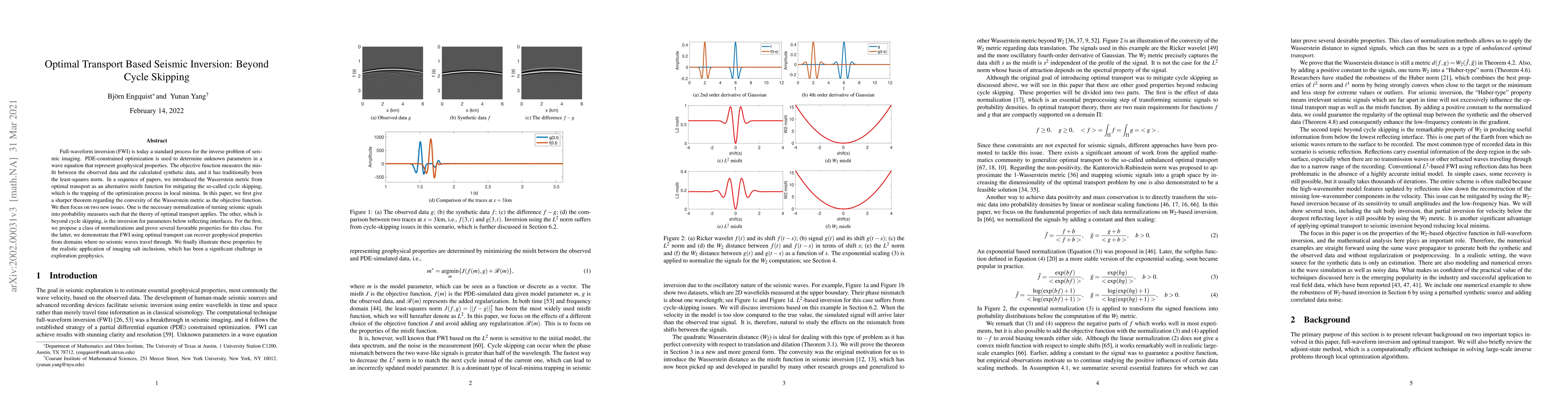 This paper proposes using the Wasserstein metric from optimal transport as an alternative objective function in full-waveform inversion (FWI) to mitigate cycle skipping. It introduces a sharper theorem on the convexity of the Wasserstein metric and addresses normalization of seismic signals and inversion for parameters below reflecting interfaces, demonstrating its effectiveness in imaging salt inclusions.