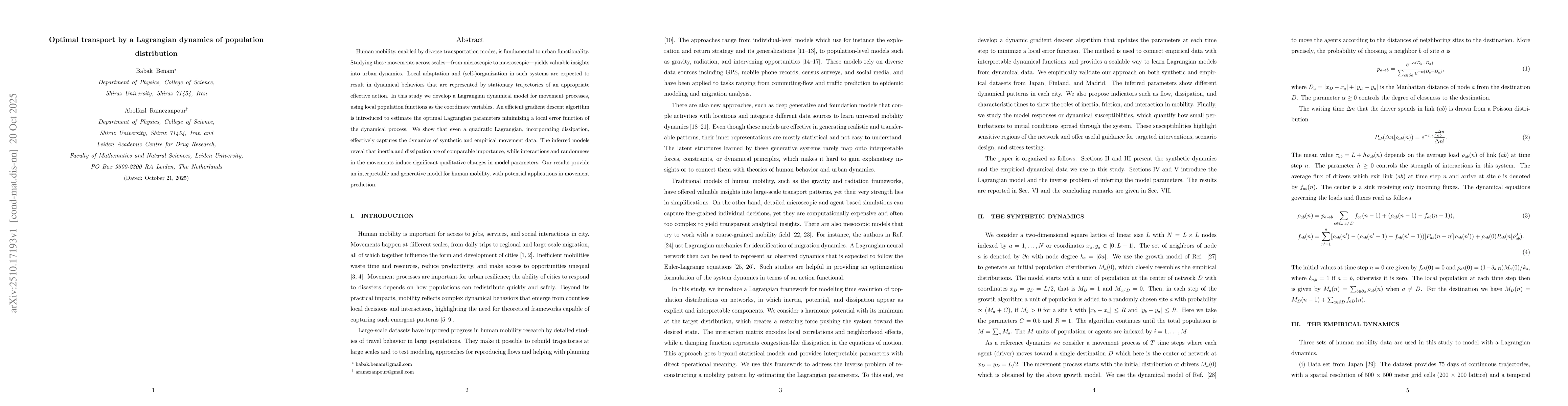 Development of a gradient descent algorithm for parameter estimation in Lagrangian dynamics of population distribution, along with a framework for modeling human mobility as an effective field theory.