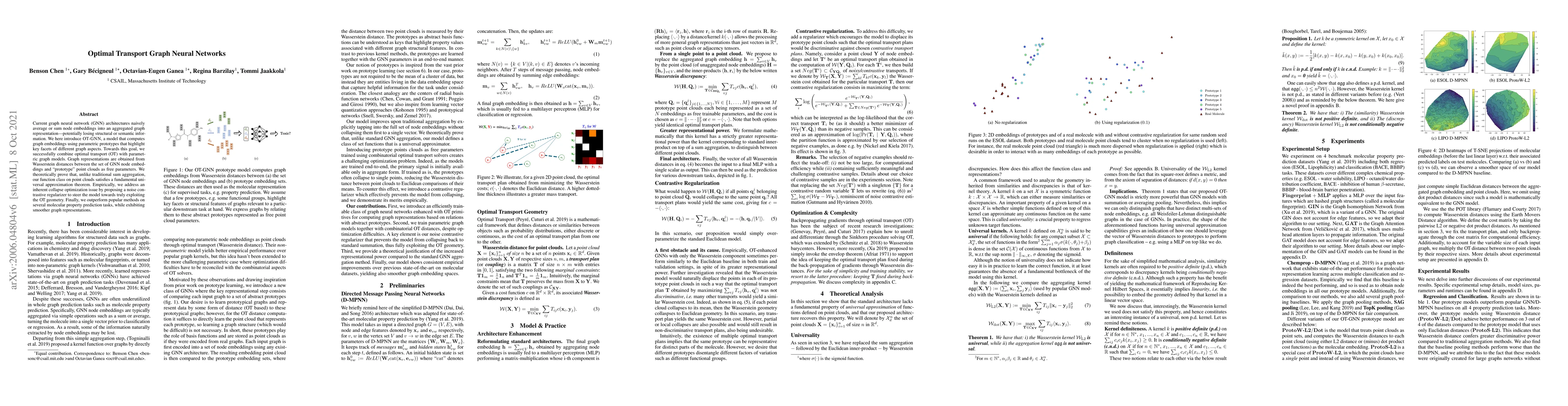 Current graph neural network (GNN) architectures naively average or sum node embeddings into an aggregated graph representation -- potentially losing structural or semantic information. We here introduce OT-GNN, a model that computes graph embeddings using parametric prototypes that highlight key facets of different graph aspects. Towards this goal, we successfully combine optimal transport (OT) with parametric graph models. Graph representations are obtained from Wasserstein distances between the set of GNN node embeddings and ``prototype'' point clouds as free parameters. We theoretically prove that, unlike traditional sum aggregation, our function class on point clouds satisfies a fundamental universal approximation theorem. Empirically, we address an inherent collapse optimization issue by proposing a noise contrastive regularizer to steer the model towards truly exploiting the OT geometry. Finally, we outperform popular methods on several molecular property prediction tasks, while exhibiting smoother graph representations.