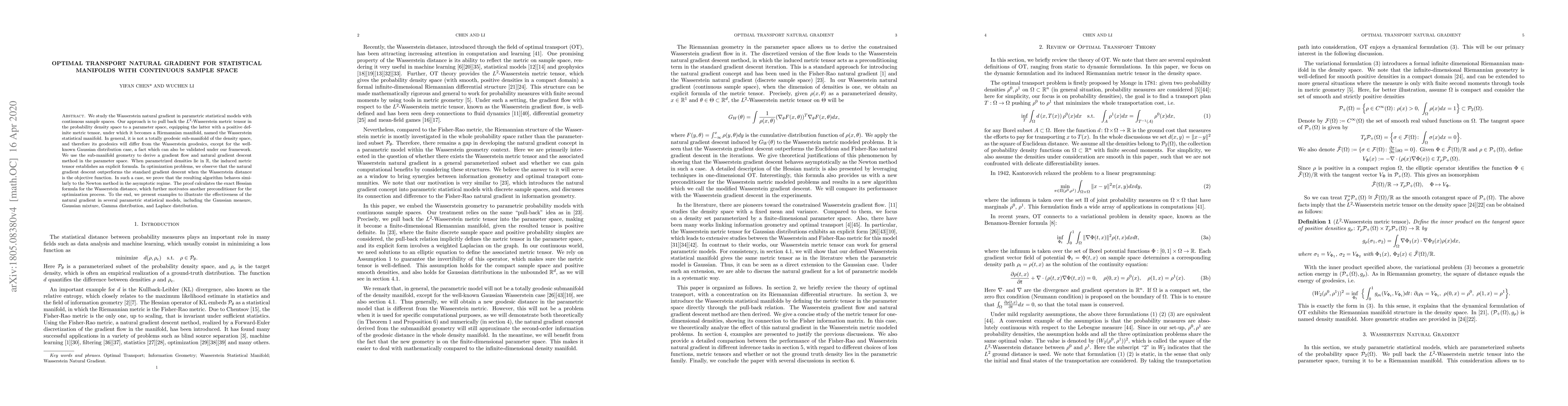 Researchers develop a method to optimize statistical models with continuous sample spaces using the Wasserstein natural gradient, outperforming traditional gradient descent in many cases, and demonstrating behavior similar to Newton's method in the asymptotic regime.