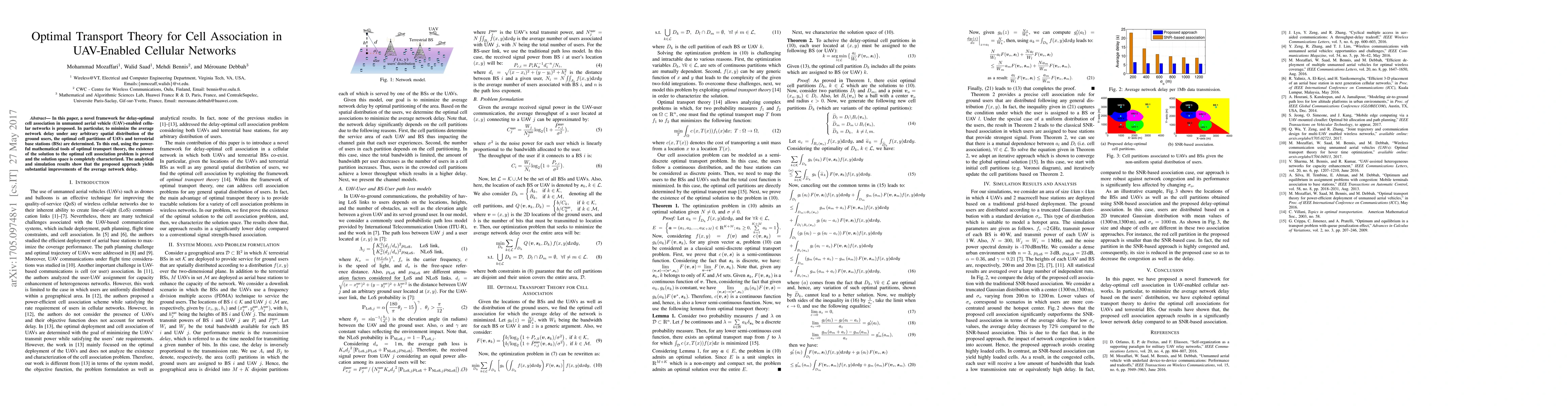 This paper proposes a novel framework for minimizing average network delay in UAV-enabled cellular networks using optimal transport theory. It determines optimal cell partitions for UAVs and terrestrial base stations, proving the existence and characterizing the solution space, which significantly reduces network delay.
