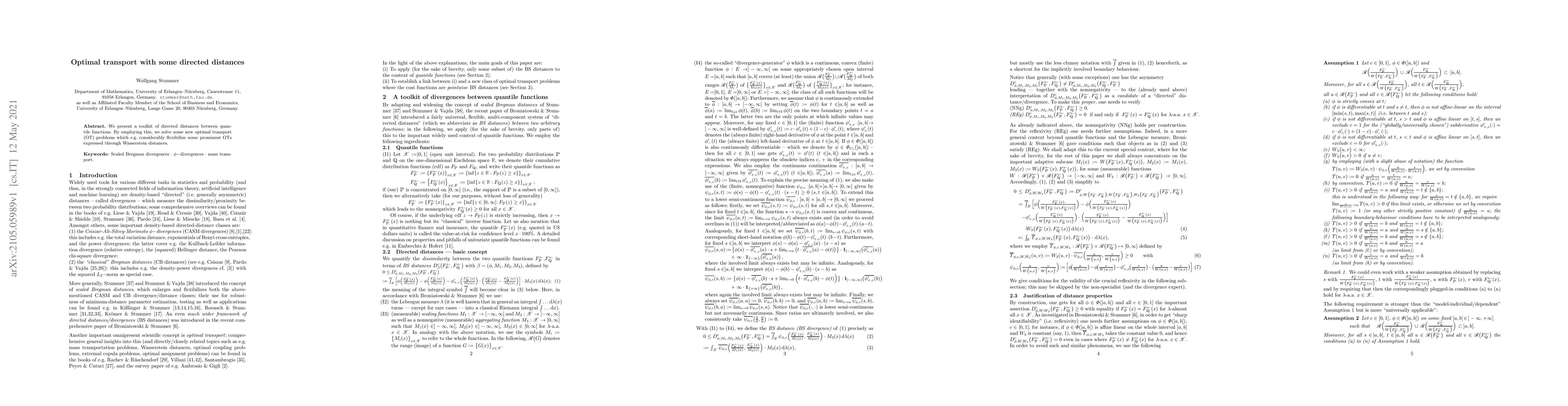 The paper introduces a toolkit of directed distances between quantile functions, leveraging a divergence-generator φ to solve new optimal transport (OT) problems, flexibly altering prominent OTs expressed through Wasserstein distances.