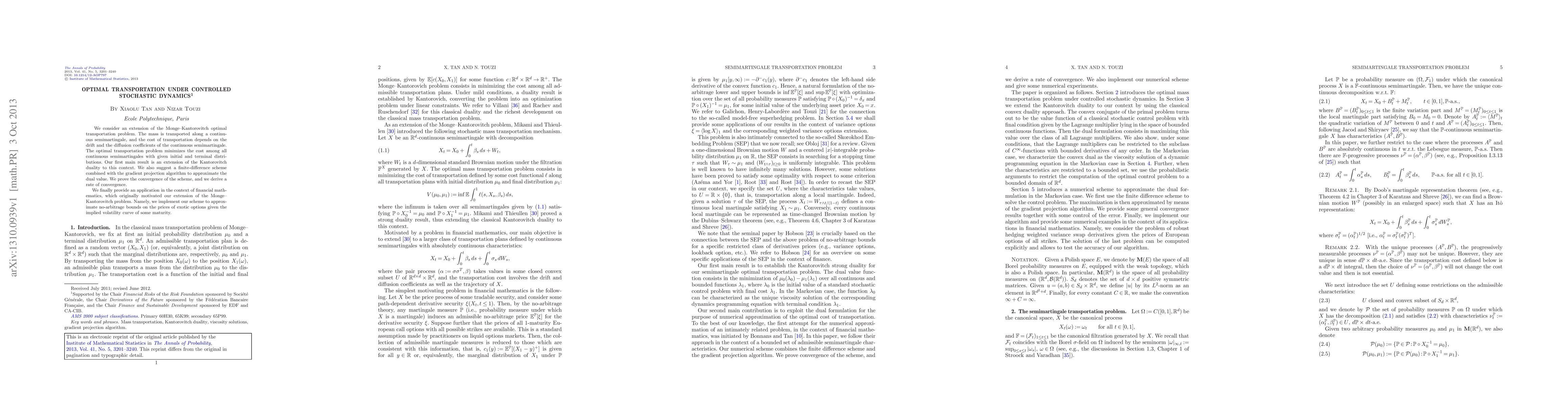 A new approach to optimal transportation problems is presented, extending the Monge-Kantorovitch problem to include continuous semimartingales with varying drift and diffusion coefficients. The method provides a way to approximate no-arbitrage bounds on exotic option prices using financial data.