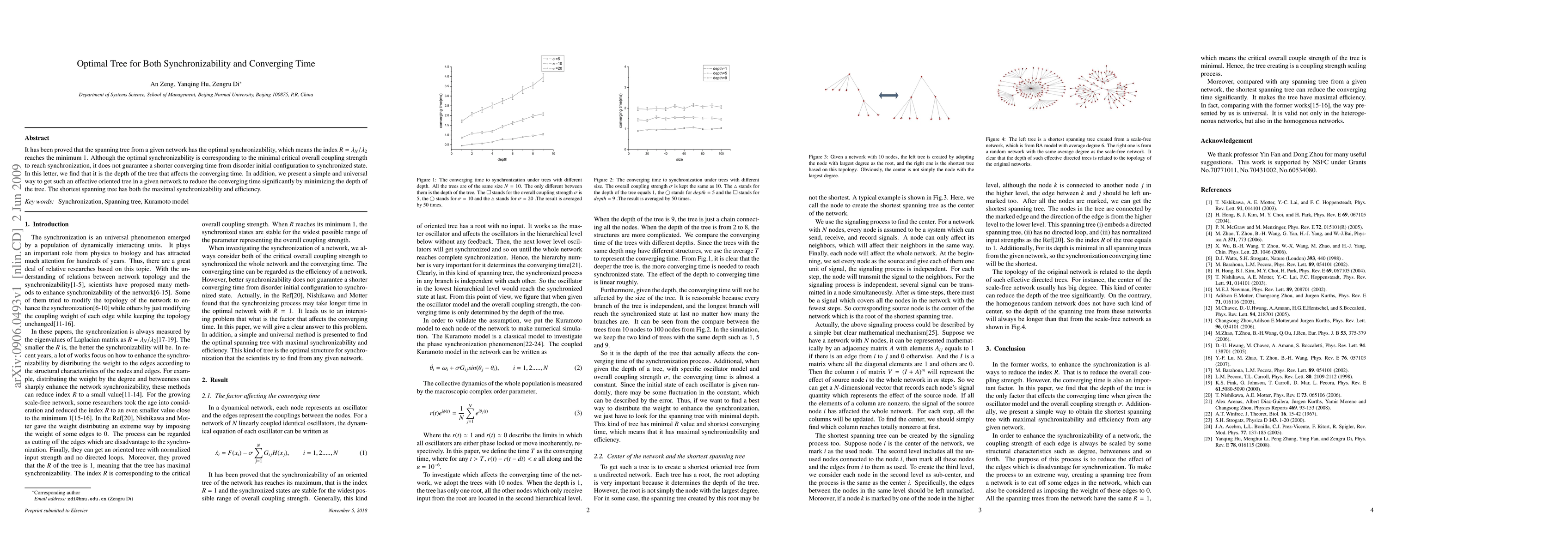 Research finds that the depth of a tree in a network affects converging time, with shorter trees reducing time to synchronization. A simple method is proposed to create an oriented tree minimizing depth for faster convergence.