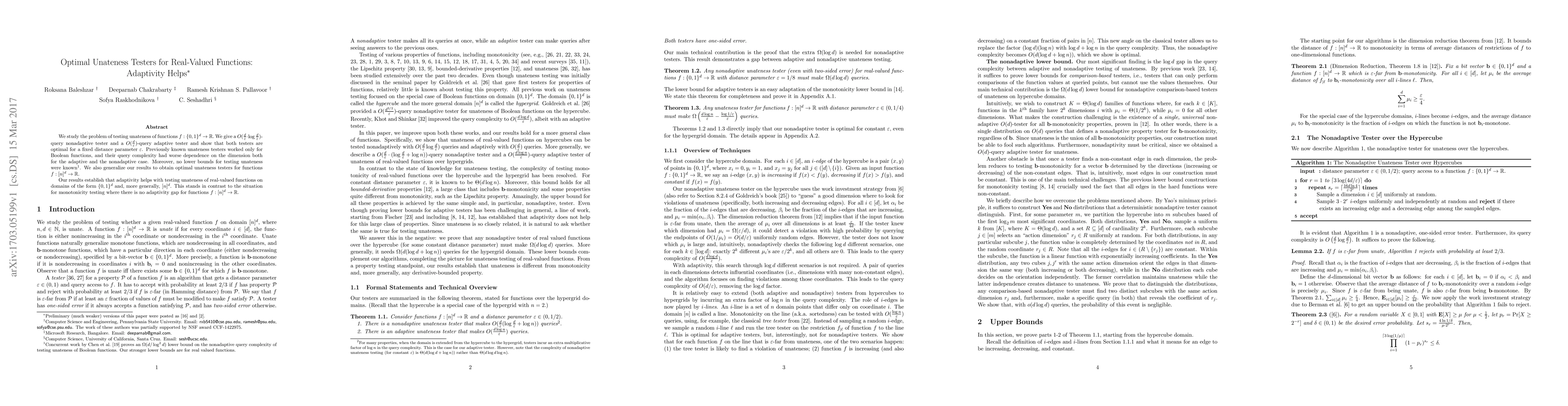 This paper presents optimal testers for determining unateness in real-valued functions, showing that adaptivity significantly improves query efficiency compared to nonadaptive methods. The adaptive tester requires $O(\frac{d}{\epsilon})$ queries, while the nonadaptive one requires $O(\frac{d}{\epsilon} \cdot \log\frac{d}{\epsilon})$, both optimal for a fixed $\epsilon$.