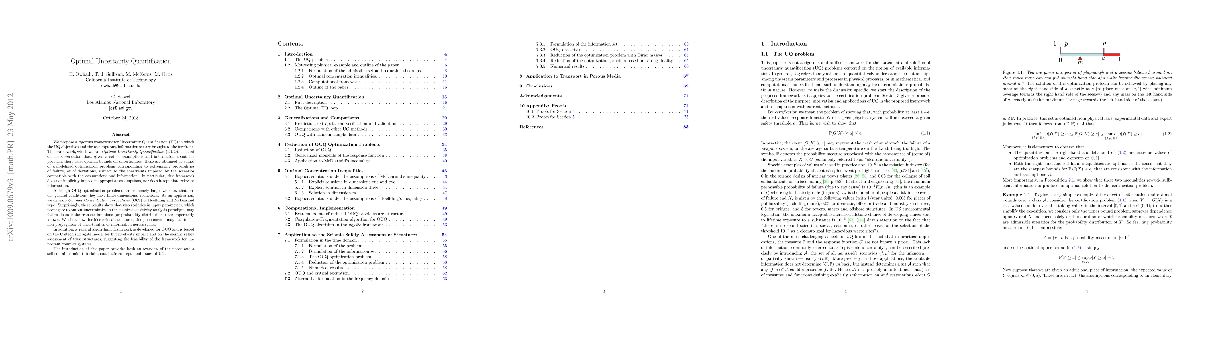 This paper introduces a rigorous framework called Optimal Uncertainty Quantification (OUQ) for quantifying uncertainties in complex systems, emphasizing optimal bounds on uncertainties derived from optimization problems. The framework avoids inappropriate assumptions and irrelevant information, and it demonstrates the non-propagation of uncertainties in hierarchical structures when transfer functions are imperfectly known.