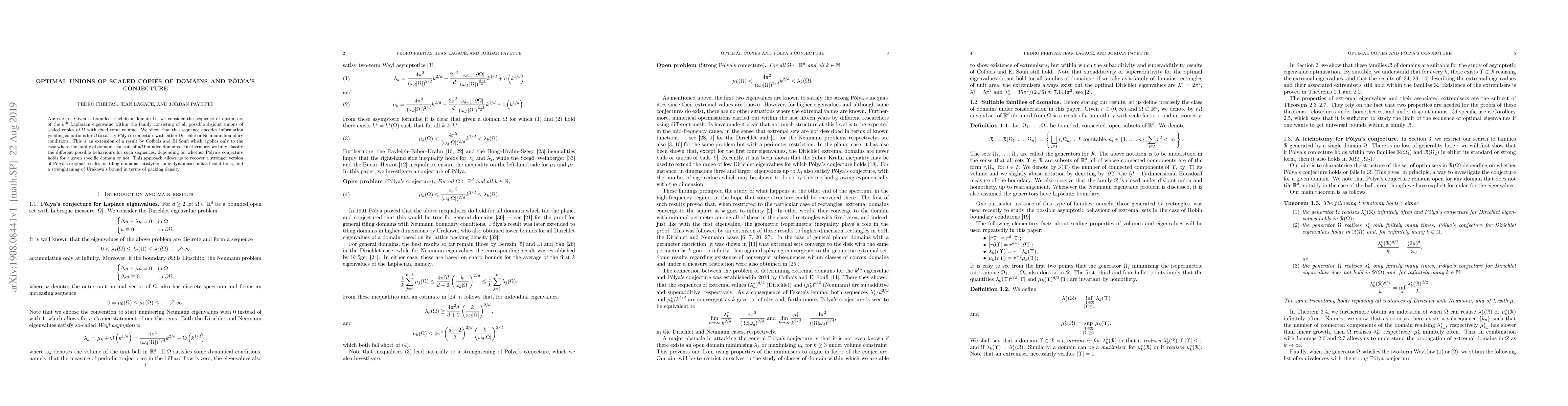 Given a bounded Euclidean domain $\Omega$, we consider the sequence of optimisers of the $k^{\rm th}$ Laplacian eigenvalue within the family consisting of all possible disjoint unions of scaled copies of $\Omega$ with fixed total volume. We show that this sequence encodes information yielding conditions for $\Omega$ to satisfy P\'{o}lya's conjecture with either Dirichlet or Neumann boundary conditions. This is an extension of a result by Colbois and El Soufi which applies only to the case where the family of domains consists of all bounded domains. Furthermore, we fully classify the different possible behaviours for such sequences, depending on whether P\'{o}lya's conjecture holds for a given specific domain or not. This approach allows us to recover a stronger version of P\'{o}lya's original results for tiling domains satisfying some dynamical billiard conditions, and a strenghtening of Urakawa's bound in terms of packing density.