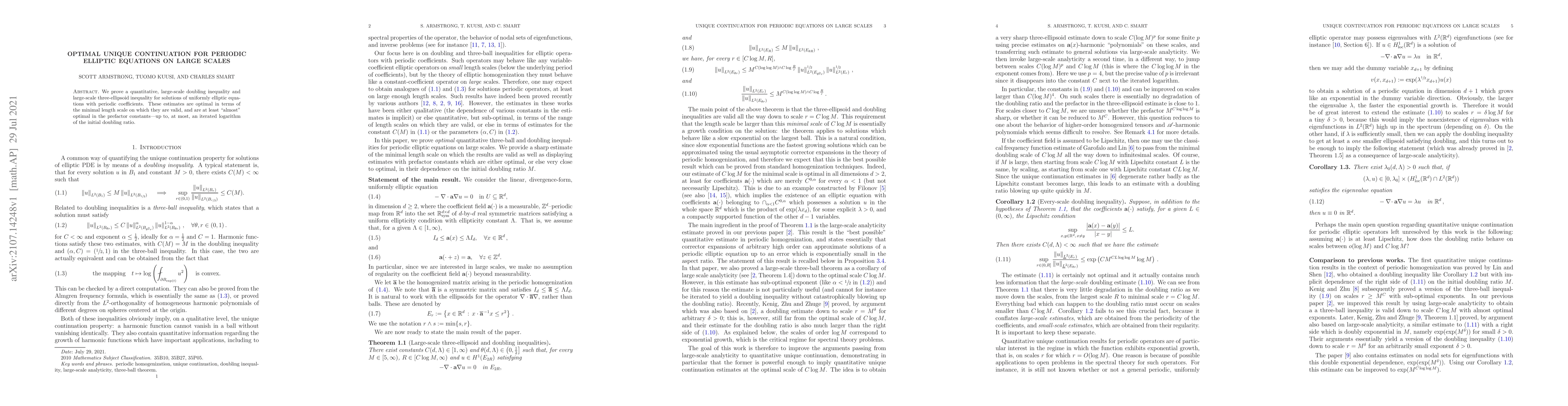 We prove a quantitative, large-scale doubling inequality and large-scale three-ellipsoid inequality for solutions of uniformly elliptic equations with periodic coefficients. These estimates are optimal in terms of the minimal length scale on which they are valid, and are at least "almost" optimal in the prefactor constants--up to, at most, an iterated logarithm of the initial doubling ratio.