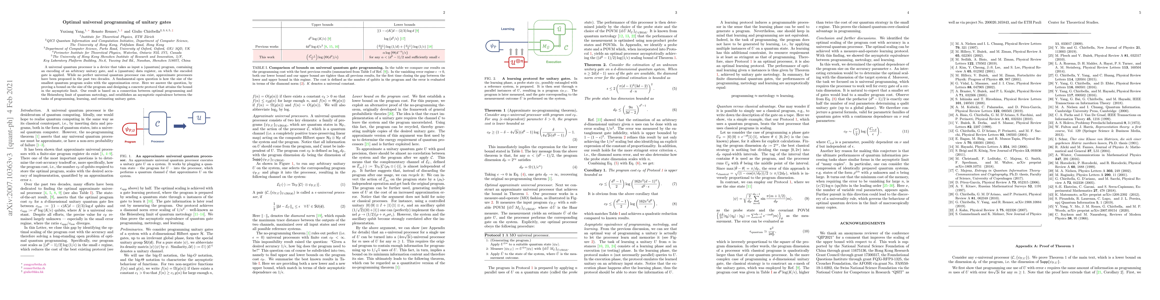 Researchers have discovered a way to optimize quantum programming, finding that the smallest program required for approximate universal processors scales with the approximation error. This breakthrough establishes an asymptotic equivalence between programming, learning, and estimating unitary gates.