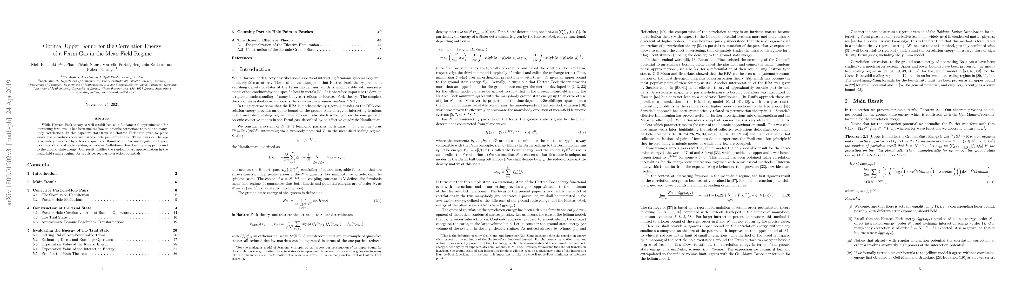 Researchers developed a new method to estimate the ground state energy of fermions in a gas, showing that corrections due to many-body correlations can be approximated using a simple quadratic Hamiltonian. This result justifies the random phase approximation for repulsive interactions.
