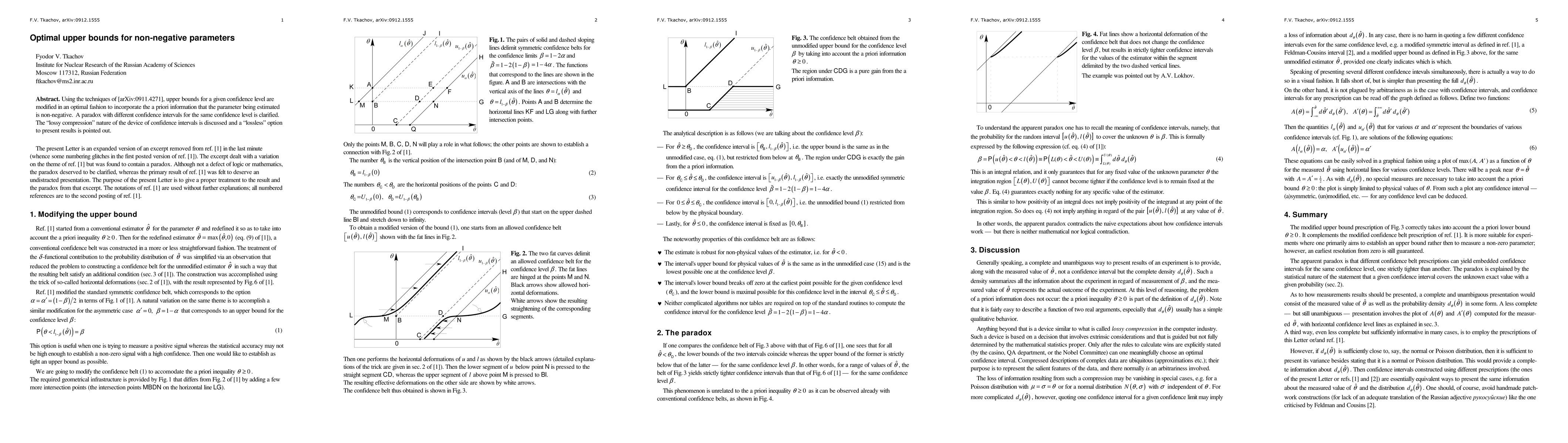 Using the techniques of [arXiv:0911.4271], upper bounds for a given confidence level are modified in an optimal fashion to incorporate the a priori information that the parameter being estimated is non-negative. A paradox with different confidence intervals for the same confidence level is clarified. The "lossy compression" nature of the device of confidence intervals is discussed and a "lossless" option to present results is pointed out.