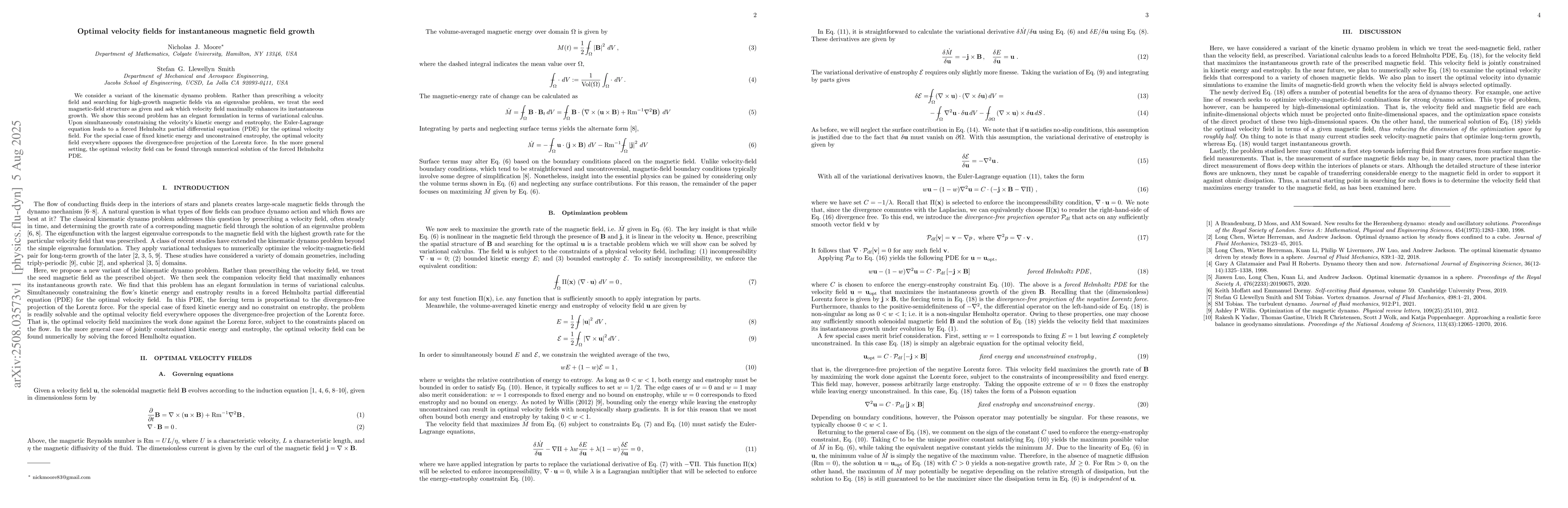 We consider a variant of the kinematic dynamo problem. Rather than prescribing a velocity field and searching for high-growth magnetic fields via an eigenvalue problem, we treat the seed magnetic-field structure as given and ask which velocity field maximally enhances its instantaneous growth. We show this second problem has an elegant formulation in terms of variational calculus. Upon simultaneously constraining the velocity's kinetic energy and enstrophy, the Euler-Lagrange equation leads to a forced Helmholtz partial differential equation (PDE) for the optimal velocity field. For the special case of fixed kinetic energy and unconstrained enstrophy, the optimal velocity field everywhere opposes the divergence-free projection of the Lorentz force. In the more general setting, the optimal velocity field can be found through numerical solution of the forced Helmholtz PDE.
