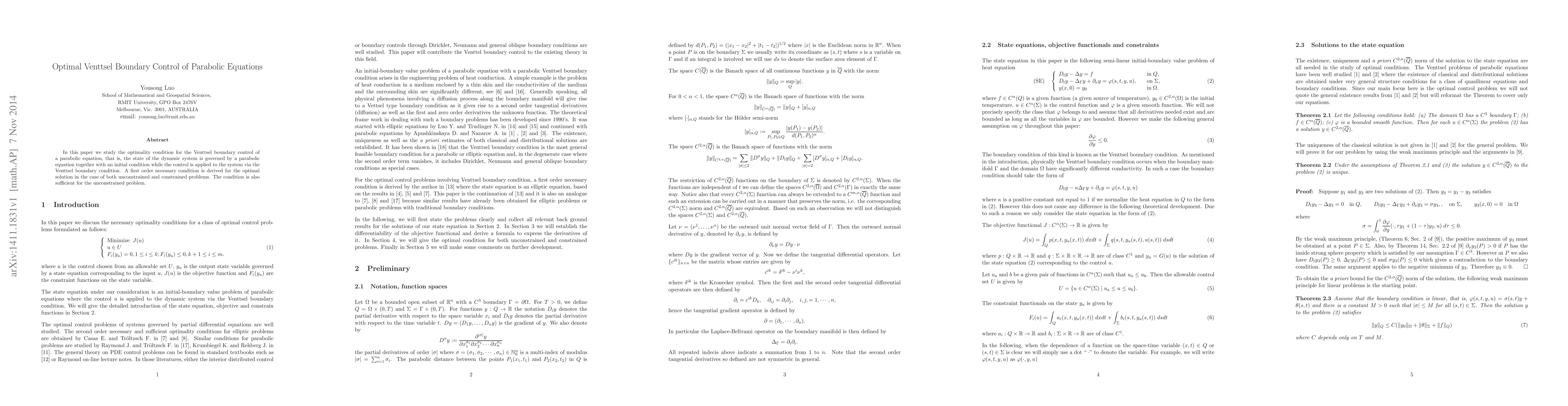 This paper derives a first-order necessary condition for optimal Venttsel boundary control of parabolic equations, showing it is sufficient for unconstrained problems and providing insights for constrained scenarios.