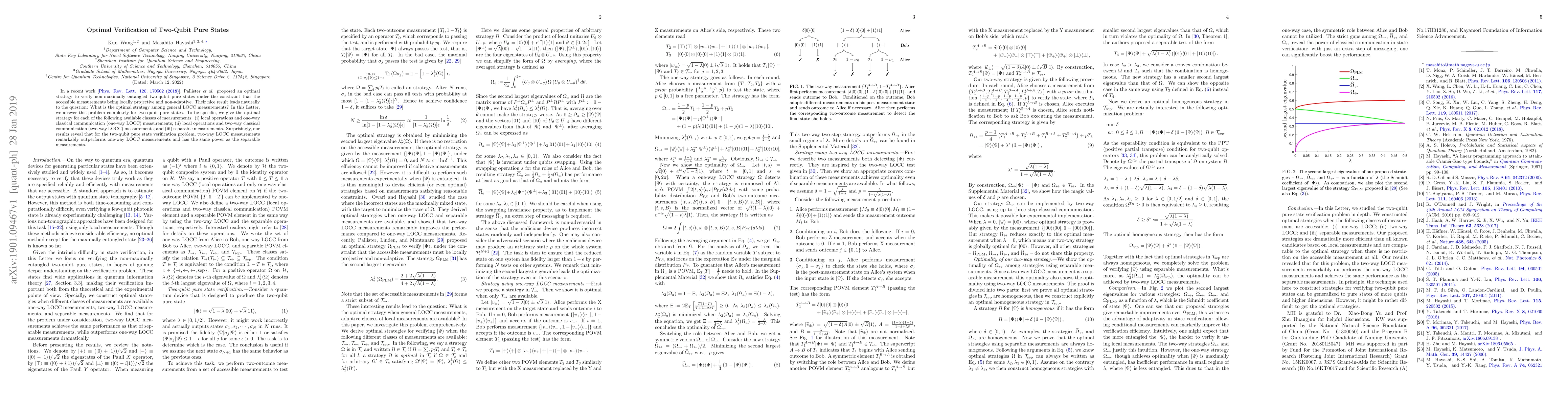 This paper presents the optimal strategies for verifying two-qubit pure states under various measurement constraints, showing that two-way LOCC measurements outperform one-way LOCC and are equally powerful as separable measurements.