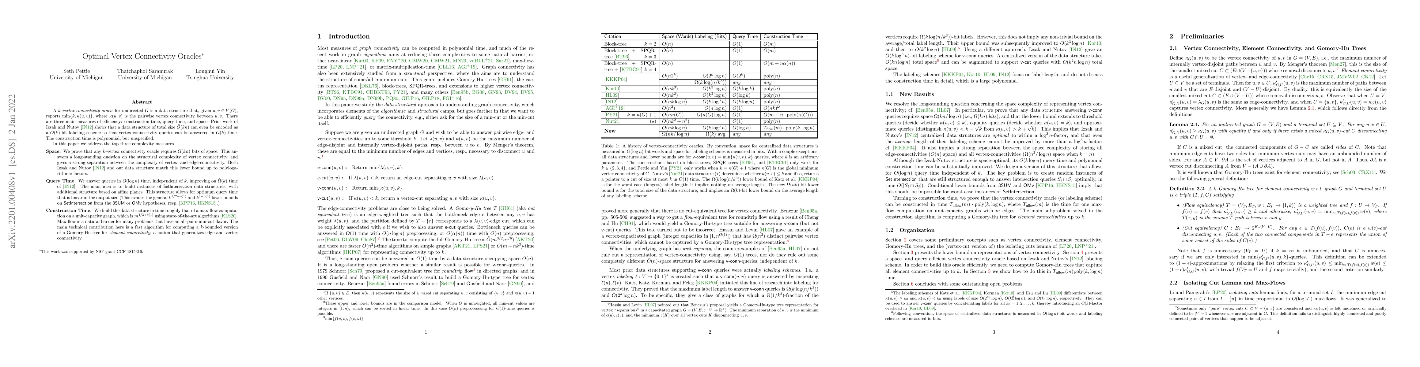 This paper presents an optimal-space vertex connectivity oracle for undirected graphs, achieving a lower bound of $\Omega(kn)$ bits for any oracle. It constructs an efficient data structure that answers connectivity queries in $O(\log n)$ time, independent of $k$, within max-flow time complexity.