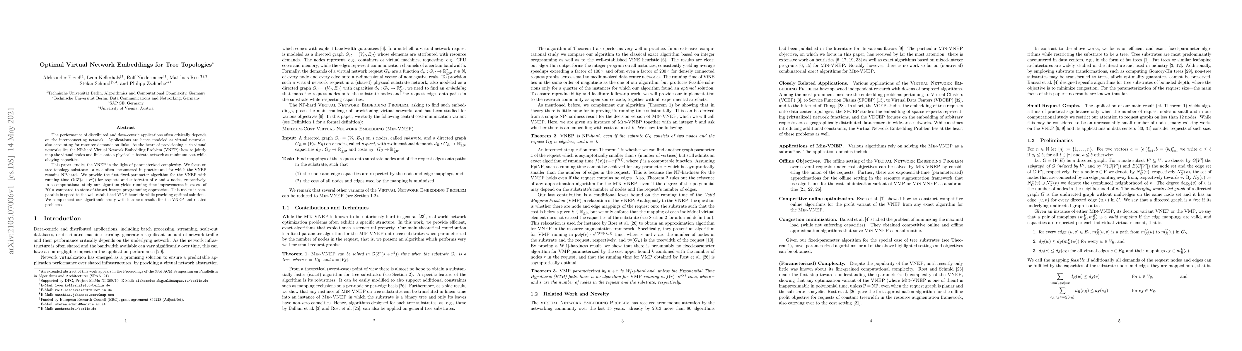The performance of distributed and data-centric applications often critically depends on the interconnecting network. Applications are hence modeled as virtual networks, also accounting for resource demands on links. At the heart of provisioning such virtual networks lies the NP-hard Virtual Network Embedding Problem (VNEP): how to jointly map the virtual nodes and links onto a physical substrate network at minimum cost while obeying capacities. This paper studies the VNEP in the light of parameterized complexity. We focus on tree topology substrates, a case often encountered in practice and for which the VNEP remains NP-hard. We provide the first fixed-parameter algorithm for the VNEP with running time $O(3^r (s+r^2))$ for requests and substrates of $r$ and $s$ nodes, respectively. In a computational study our algorithm yields running time improvements in excess of 200x compared to state-of-the-art integer programming approaches. This makes it comparable in speed to the well-established ViNE heuristic while providing optimal solutions. We complement our algorithmic study with hardness results for the VNEP and related problems.
