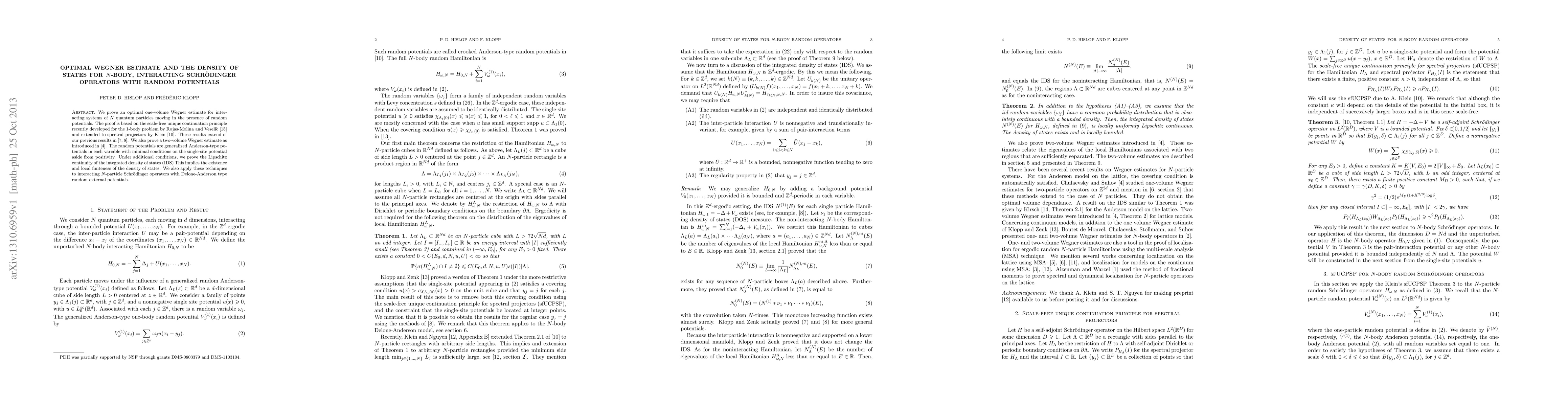 We prove an optimal one-volume Wegner estimate for interacting systems of $N$ quantum particles moving in the presence of random potentials. The proof is based on the scale-free unique continuation principle recently developed for the 1-body problem by Rojas-Molina and Veseli\`c \cite{RM-V1} and extended to spectral projectors by Klein \cite{klein1}. These results extend of our previous results in \cite{CHK:2003,CHK:2007}. We also prove a two-volume Wegner estimate as introduced in \cite{chulaevsky-suhov1}. The random potentials are generalized Anderson-type potentials in each variable with minimal conditions on the single-site potential aside from positivity. Under additional conditions, we prove the Lipschitz continuity of the integrated density of states (IDS) This implies the existence and local finiteness of the density of states. We also apply these techniques to interacting $N$-particle Schr\"odinger operators with Delone-Anderson type random external potentials.