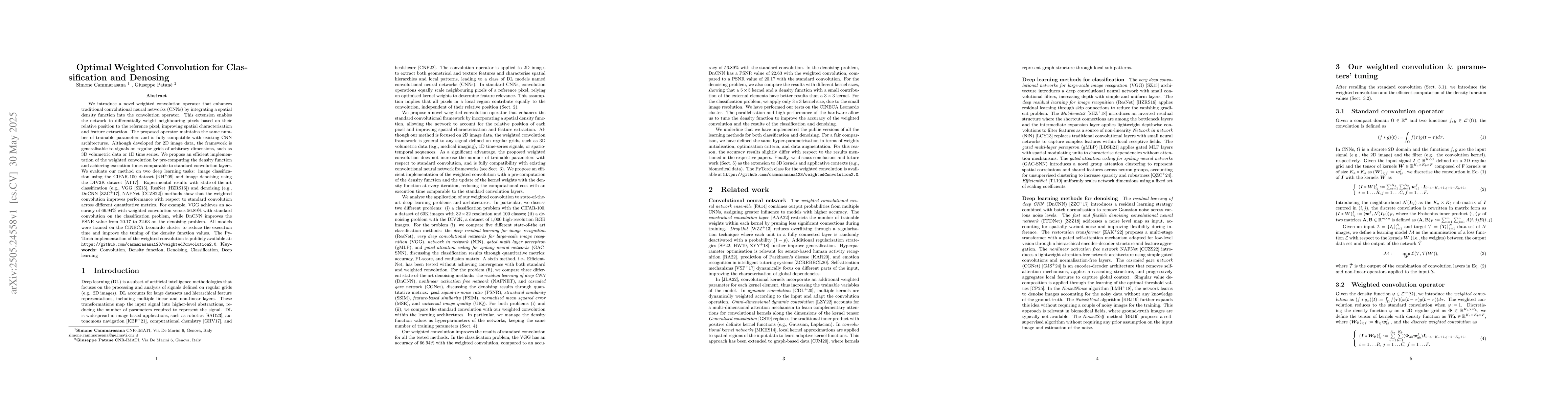 This research contributes to improving the performance of CNNs in classification and denoising tasks by introducing a weighted convolution operator that differentially weighs neighboring pixels based on their relative position, without increasing computational complexity.
