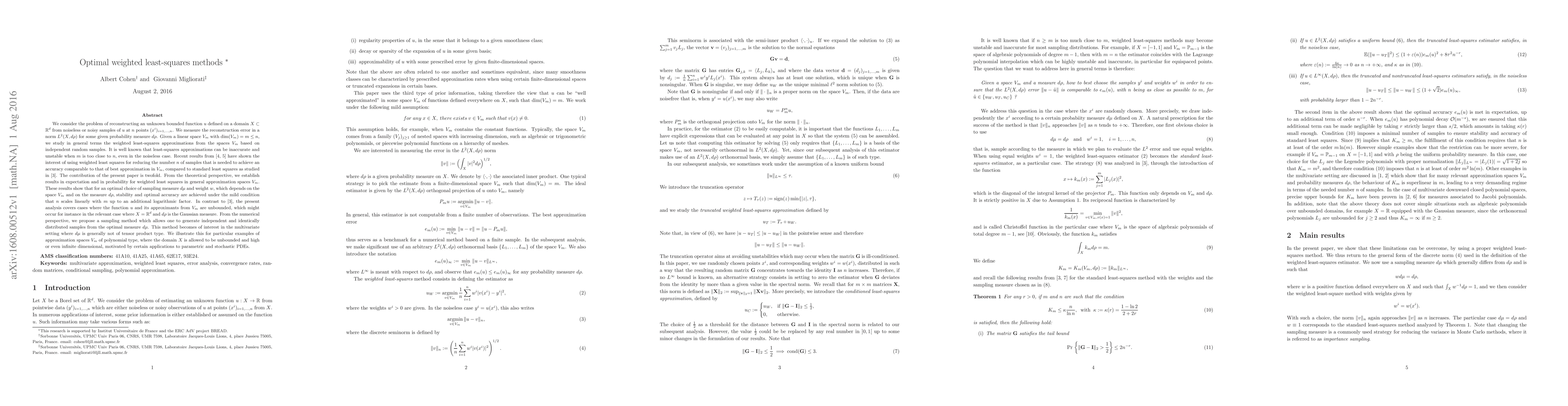 This paper investigates optimal weighted least-squares methods for reconstructing an unknown function from samples, establishing theoretical results for stability and accuracy under optimal sampling conditions. It also proposes a numerical sampling method for generating samples from the optimal measure, applicable to high-dimensional, unbounded domains.
