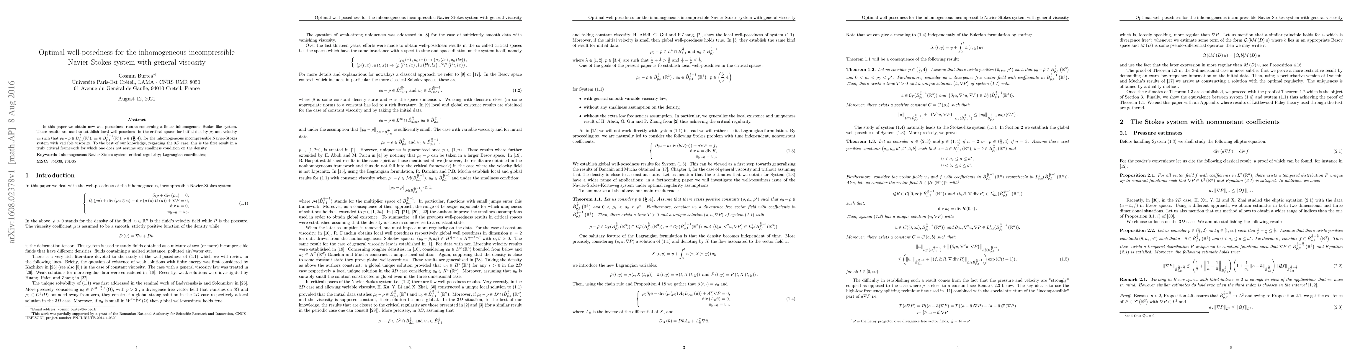 In this paper we obtain new well-possedness results concerning a linear inhomogenous Stokes-like system. These results are used to establish local well-posedness in the critical spaces for initial density $\rho_{0}$ and velocity $u_{0}$ such that $\rho_{0}-\rho\in\dot{B}_{p,1}^{\frac{3}{p}}(\mathbb{R}^{3})$, $u_{0}\in\dot{B}_{p,1}^{\frac{3}{p}-1}(\mathbb{R}^{3})$, $p\in\left( \frac{6}{5},4\right) $, for the inhomogeneous incompressible Navier-Stokes system with variable viscosity. To the best of our knowledge, regarding the $3D$ case, this is the first result in a truly critical framework for which one does not assume any smallness condition on the density.