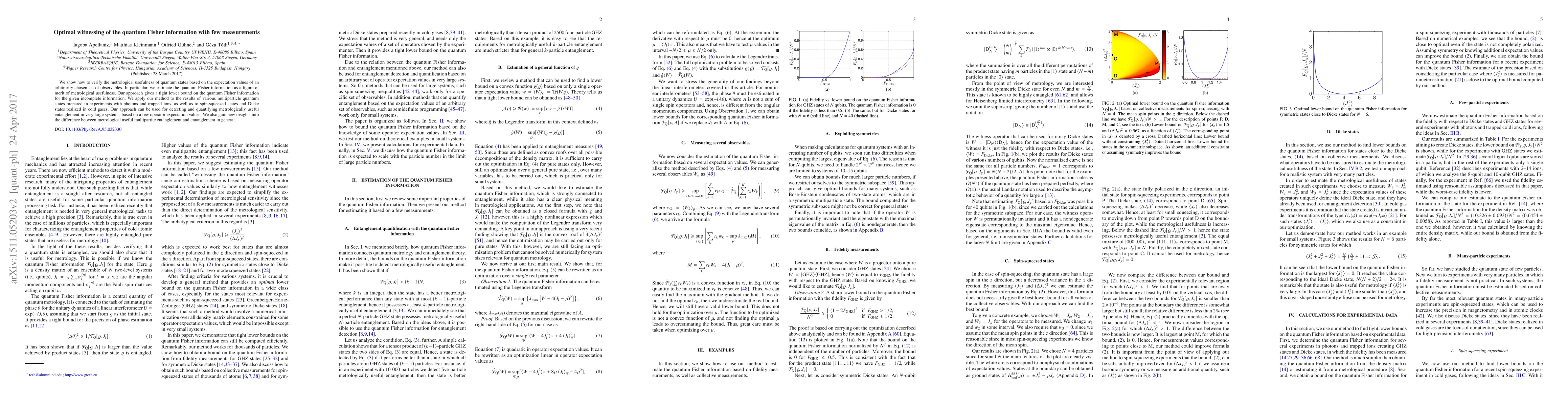 We show how to verify the metrological usefulness of quantum states based on the expectation values of an arbitrarily chosen set of observables. In particular, we estimate the quantum Fisher information as a figure of merit of metrological usefulness. Our approach gives a tight lower bound on the quantum Fisher information for the given incomplete information. We apply our method to the results of various multiparticle quantum states prepared in experiments with photons and trapped ions, as well as to spin-squeezed states and Dicke states realized in cold gases. Our approach can be used for detecting and quantifying metrologically useful entanglement in very large systems, based on a few operator expectation values. We also gain new insights into the difference between metrological useful multipartite entanglement and entanglement in general.