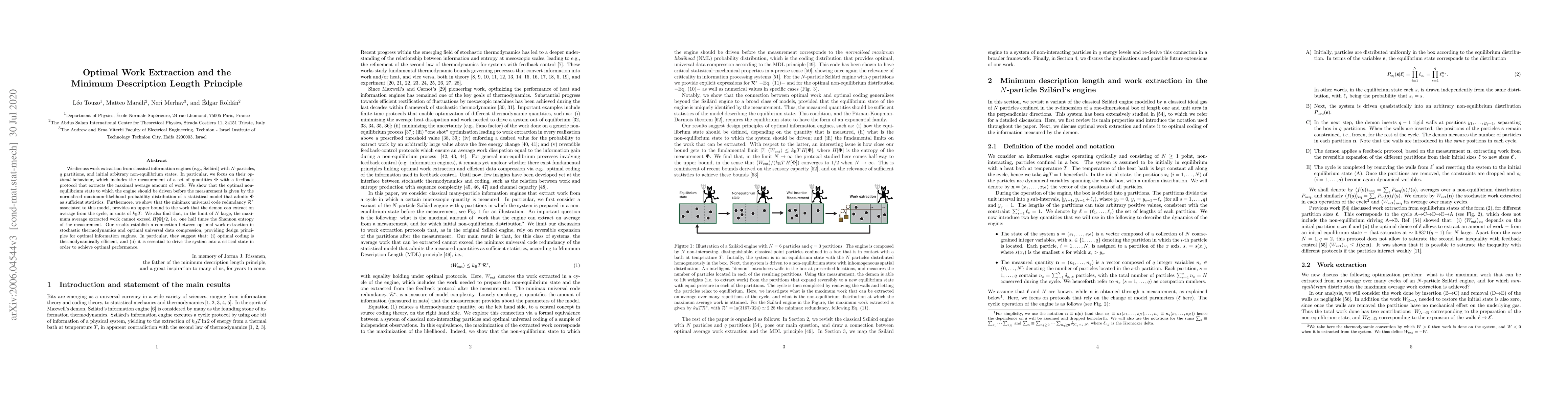 A study finds that optimal work extraction from a thermodynamic system is linked to universal data compression, suggesting driving the system into a critical state for efficient performance.