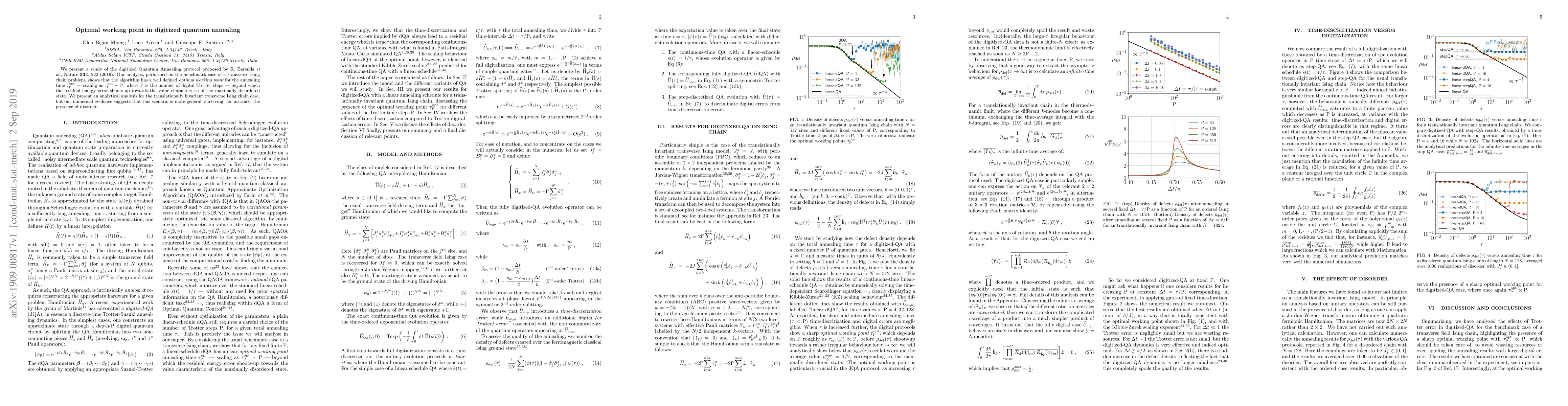 This paper investigates the digitized Quantum Annealing protocol, identifying an optimal working point for the annealing time that scales with the number of digital Trotter steps. The study finds that beyond this optimal point, residual energy errors increase, indicating a transition to a disordered state.