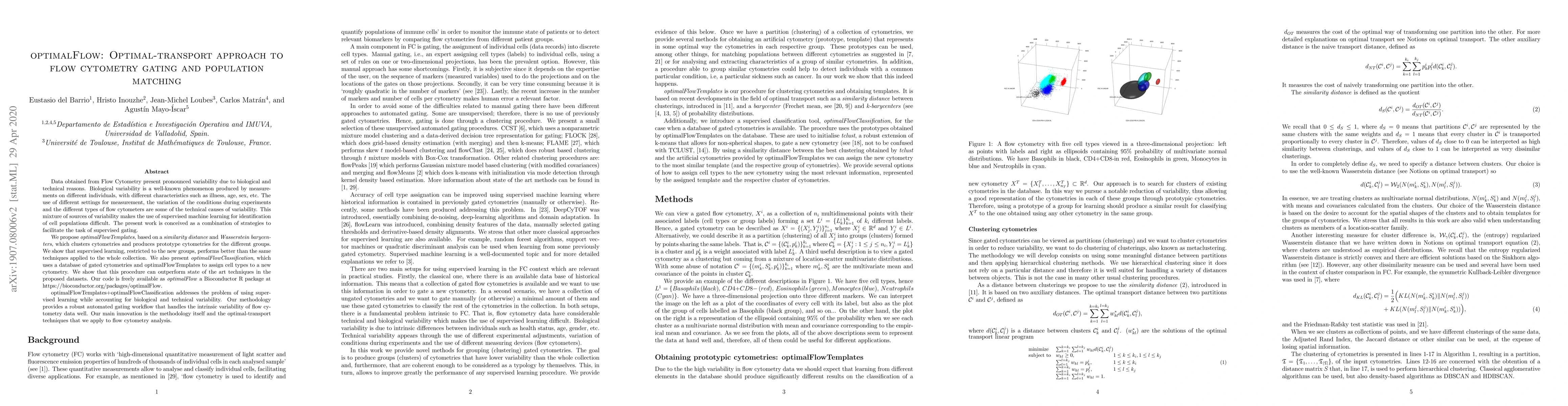 The paper proposes optimalFlowTemplates and optimalFlowClassification, leveraging optimal-transport techniques to address variability in flow cytometry data, thereby improving supervised gating and population matching. The approach outperforms existing methods, offering a robust automated gating workflow.