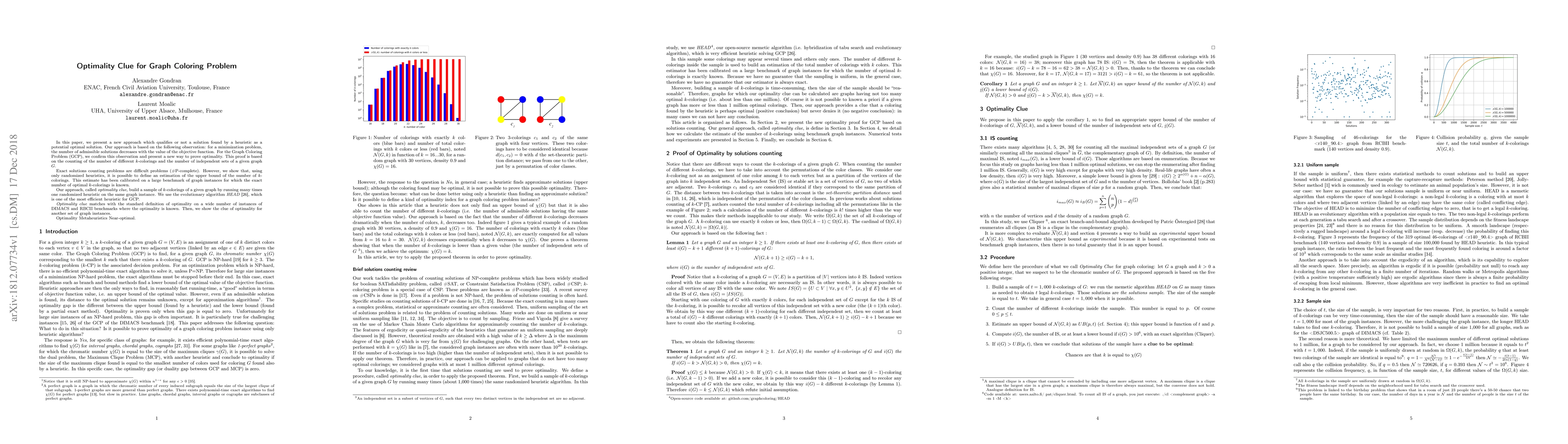 In this paper, we present a new approach which qualifies or not a solution found by a heuristic as a potential optimal solution. Our approach is based on the following observation: for a minimization problem, the number of admissible solutions decreases with the value of the objective function. For the Graph Coloring Problem (GCP), we confirm this observation and present a new way to prove optimality. This proof is based on the counting of the number of different k-colorings and the number of independent sets of a given graph G. Exact solutions counting problems are difficult problems (\#P-complete). However, we show that, using only randomized heuristics, it is possible to define an estimation of the upper bound of the number of k-colorings. This estimate has been calibrated on a large benchmark of graph instances for which the exact number of optimal k-colorings is known. Our approach, called optimality clue, build a sample of k-colorings of a given graph by running many times one randomized heuristic on the same graph instance. We use the evolutionary algorithm HEAD [Moalic et Gondran, 2018], which is one of the most efficient heuristic for GCP. Optimality clue matches with the standard definition of optimality on a wide number of instances of DIMACS and RBCII benchmarks where the optimality is known. Then, we show the clue of optimality for another set of graph instances. Optimality Metaheuristics Near-optimal.