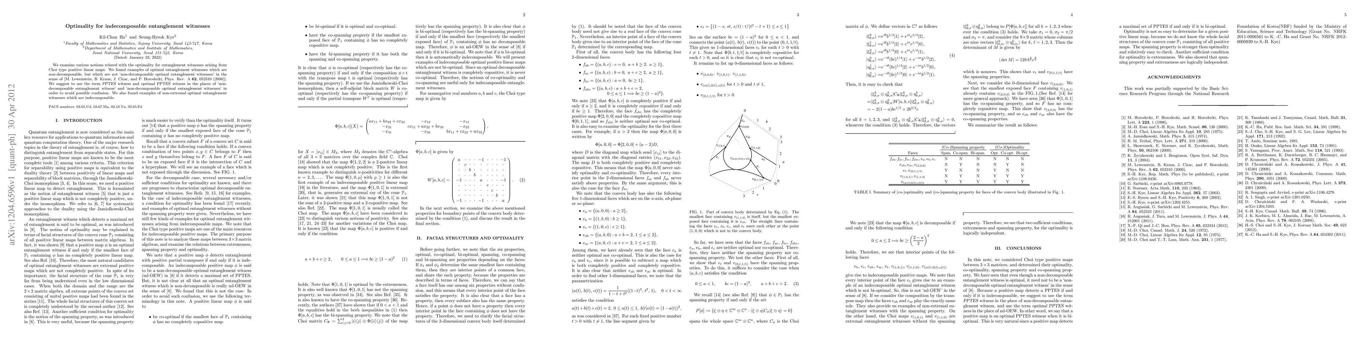 We examine various notions related with the optimality for entanglement witnesses arising from Choi type positive linear maps. We found examples of optimal entanglement witnesses which are non-decomposable, but which are not `non-decomposable optimal entanglement witnesses' in the sense of [M. Lewenstein, B. Kraus, J. Cirac, and P. Horodecki, Phys. Rev. A 62, 052310 (2000)]. We suggest to use the term `PPTES witness' and `optimal PPTES witness' in the places of `non-decomposable entanglement witness' and `non-decomposable optimal entanglement witnesses' in order to avoid possible confusion. We also found examples of non-extremal optimal entanglement witnesses which are indecomposable.