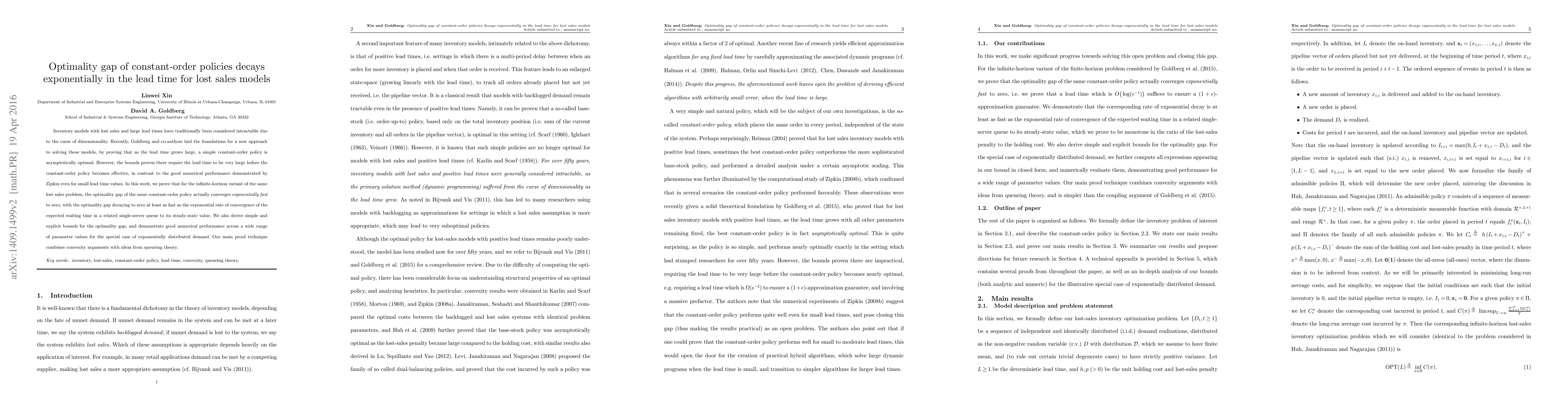 This paper demonstrates that the optimality gap of constant-order policies in lost sales inventory models with large lead times decays exponentially as lead time increases, contrasting previous bounds that required excessively large lead times. The authors provide explicit bounds and show strong numerical performance for small lead times.