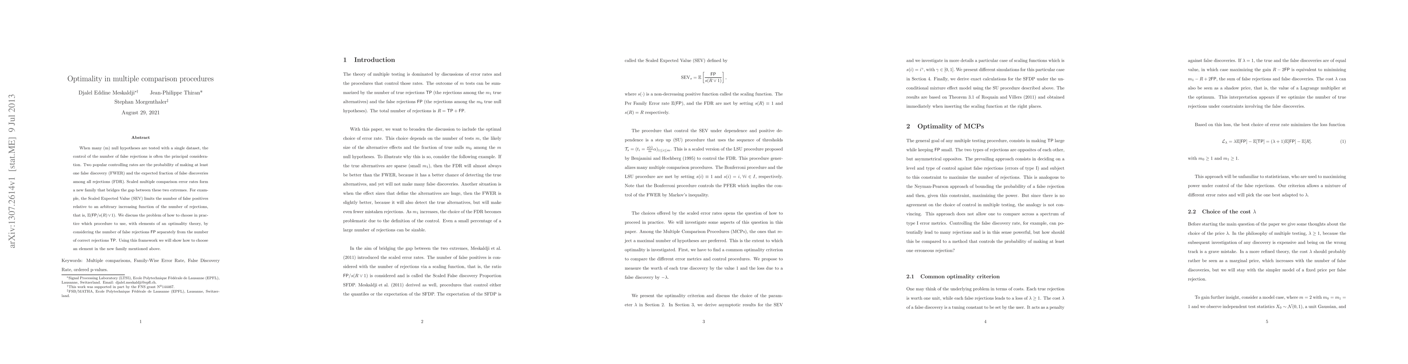 When many (m) null hypotheses are tested with a single dataset, the control of the number of false rejections is often the principal consideration. Two popular controlling rates are the probability of making at least one false discovery (FWER) and the expected fraction of false discoveries among all rejections (FDR). Scaled multiple comparison error rates form a new family that bridges the gap between these two extremes. For example, the Scaled Expected Value (SEV) limits the number of false positives relative to an arbitrary increasing function of the number of rejections, that is, E(FP/s(R)). We discuss the problem of how to choose in practice which procedure to use, with elements of an optimality theory, by considering the number of false rejections FP separately from the number of correct rejections TP. Using this framework we will show how to choose an element in the new family mentioned above.