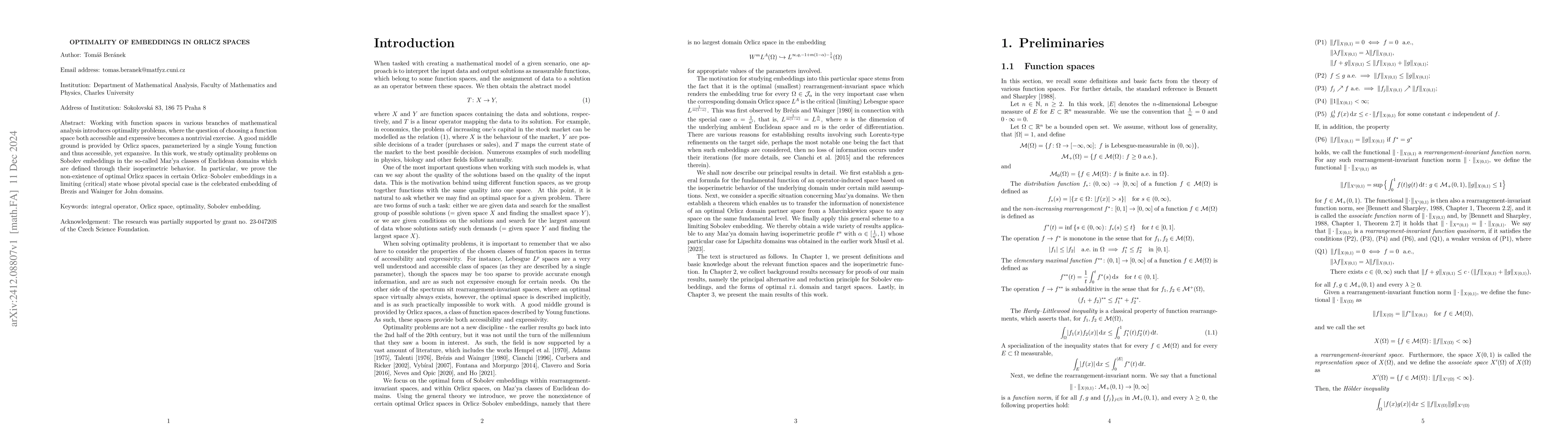 This paper explores the optimality of embeddings within Orlicz spaces, focusing on Sobolev embeddings in Mazya classes of Euclidean domains. It establishes the nonexistence of optimal Orlicz spaces for certain critical embeddings, with a notable application to the Brezis-Wainger embedding for John domains.