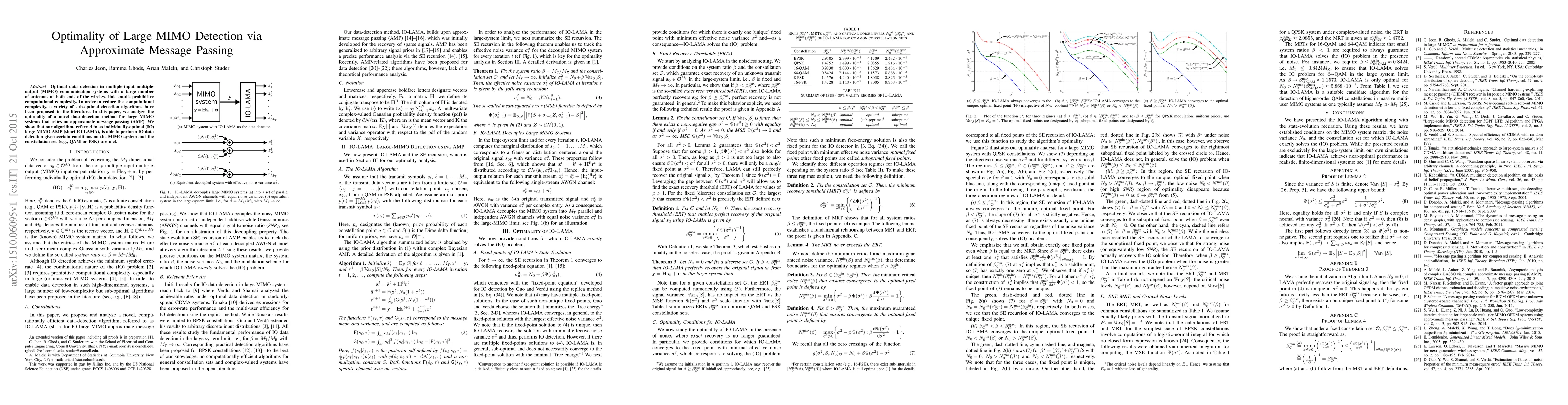 This paper proposes a novel detection method called individually-optimal (IO) large-MIMO AMP (IO-LAMA) for MIMO systems with many antennas, aiming to reduce computational complexity. The authors demonstrate that IO-LAMA achieves optimal data detection under specific conditions related to the MIMO system and constellation types.