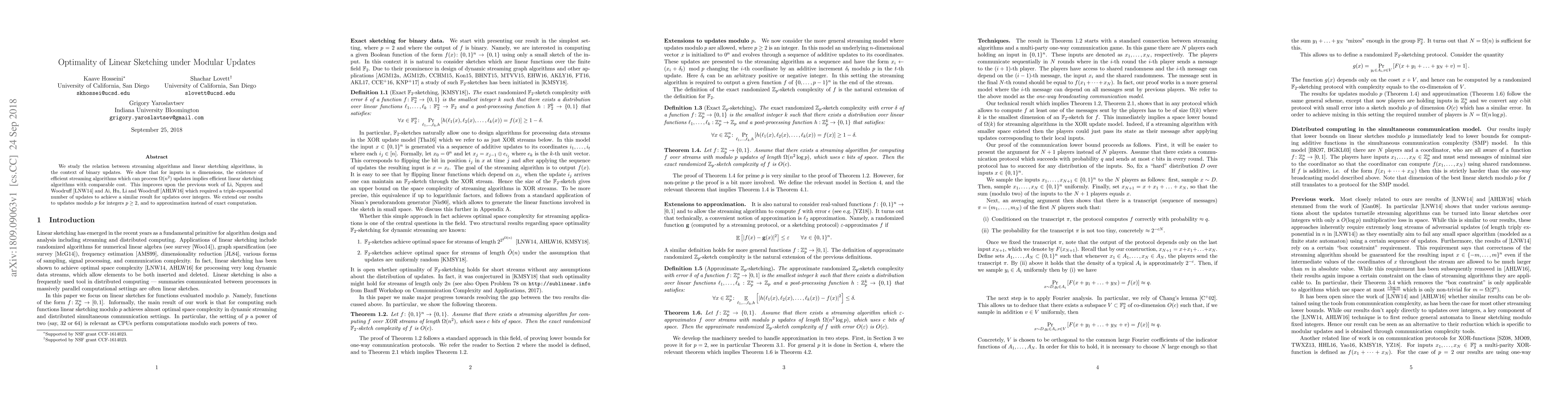We study the relation between streaming algorithms and linear sketching algorithms, in the context of binary updates. We show that for inputs in $n$ dimensions, the existence of efficient streaming algorithms which can process $\Omega(n^2)$ updates implies efficient linear sketching algorithms with comparable cost. This improves upon the previous work of Li, Nguyen and Woodruff [LNW14] and Ai, Hu, Li and Woodruff [AHLW16] which required a triple-exponential number of updates to achieve a similar result for updates over integers. We extend our results to updates modulo $p$ for integers $p \ge 2$, and to approximation instead of exact computation.