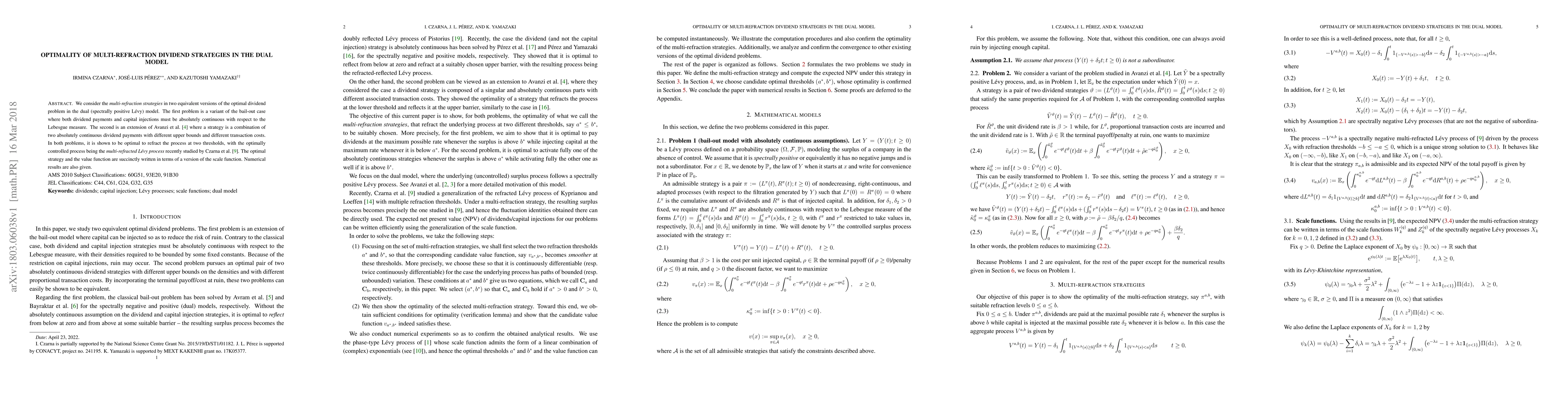 We consider the multi-refraction strategies in two equivalent versions of the optimal dividend problem in the dual (spectrally positive L\'evy) model. The first problem is a variant of the bail-out case where both dividend payments and capital injections must be absolutely continuous with respect to the Lebesgue measure. The second is an extension of Avanzi et al. [4] where a strategy is a combination of two absolutely continuous dividend payments with different upper bounds and different transaction costs. In both problems, it is shown to be optimal to refract the process at two thresholds, with the optimally controlled process being the multi-refracted L\'evy process recently studied by Czarna et al. [9]. The optimal strategy and the value function are succinctly written in terms of a version of the scale function. Numerical results are also given.