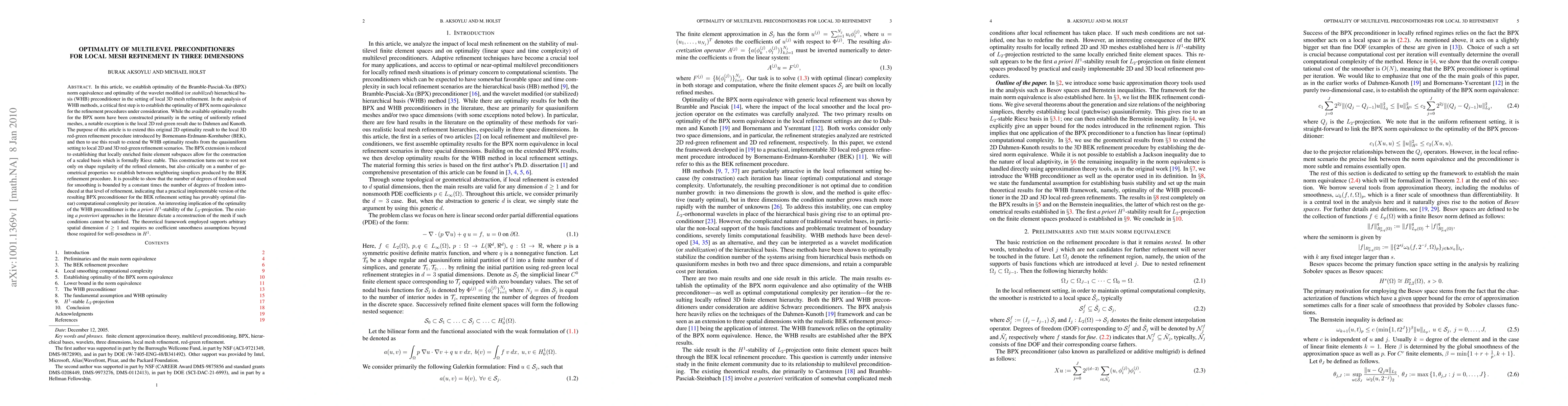 In this article, we establish optimality of the Bramble-Pasciak-Xu (BPX) norm equivalence and optimality of the wavelet modified (or stabilized) hierarchical basis (WHB) preconditioner in the setting of local 3D mesh refinement. In the analysis of WHB methods, a critical first step is to establish the optimality of BPX norm equivalence for the refinement procedures under consideration. While the available optimality results for the BPX norm have been constructed primarily in the setting of uniformly refined meshes, a notable exception is the local 2D red-green result due to Dahmen and Kunoth. The purpose of this article is to extend this original 2D optimality result to the local 3D red-green refinement procedure introduced by Bornemann-Erdmann-Kornhuber (BEK), and then to use this result to extend the WHB optimality results from the quasiuniform setting to local 2D and 3D red-green refinement scenarios. The BPX extension is reduced to establishing that locally enriched finite element subspaces allow for the construction of a scaled basis which is formally Riesz stable. It is possible to show that the number of degrees of freedom used for smoothing is bounded by a constant times the number of degrees of freedom introduced at that level of refinement, indicating that a practical implementable version of the resulting BPX preconditioner for the BEK refinement setting has provably optimal (linear) computational complexity per iteration. An interesting implication of the optimality of the WHB preconditioner is the a priori H1-stability of the L2-projection. The theoretical framework employed supports arbitrary spatial dimension d >= 1 and requires no coefficient smoothness assumptions beyond those required for well-posedness in H1.
