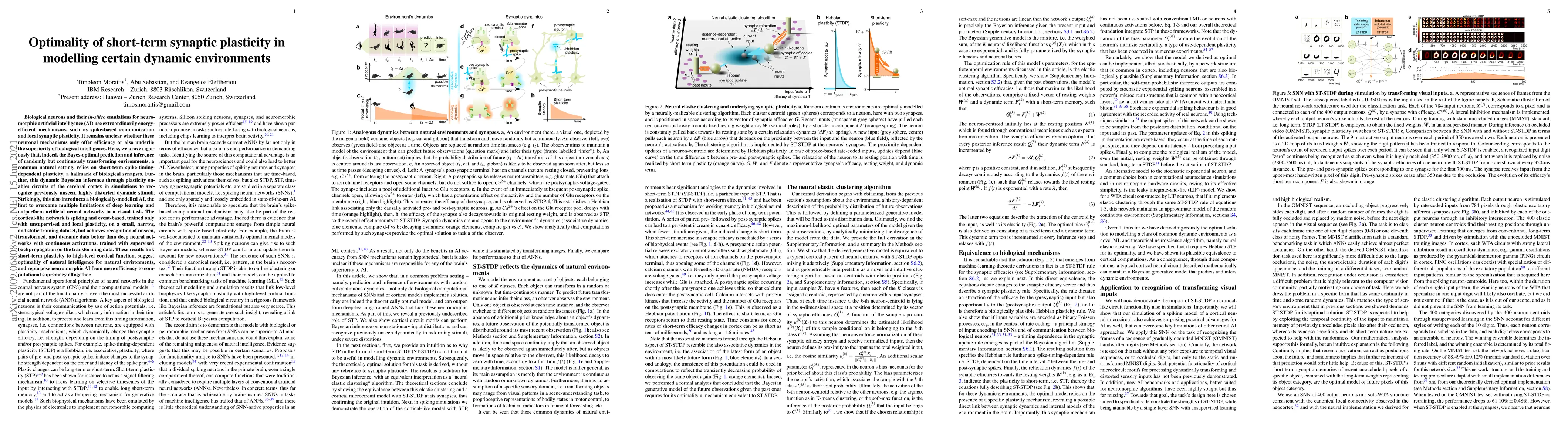 This paper demonstrates that short-term synaptic plasticity, akin to biological synapses, is optimal for Bayesian inference in dynamic environments. The study shows that a spiking, event-based neural network with unsupervised local plasticity can outperform deep learning networks in recognizing transformed and dynamic stimuli, suggesting a link between natural intelligence and computational supremacy.