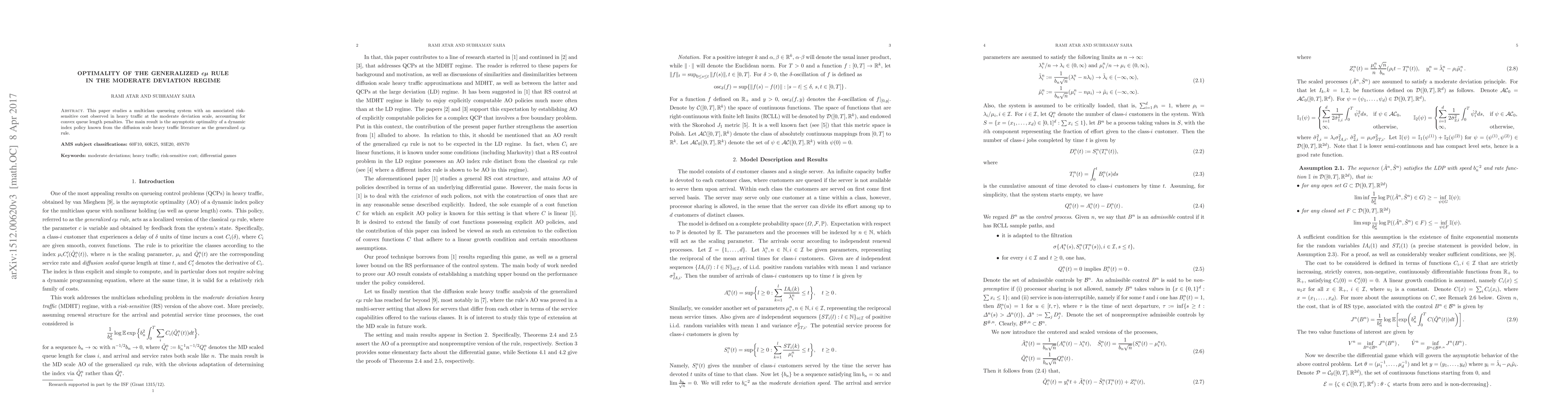 This paper shows that a specific dynamic index policy, known as the generalized cβ-rule, is asymptotically optimal in a multiclass queueing system with risk-sensitive costs, even at moderate deviation scales.