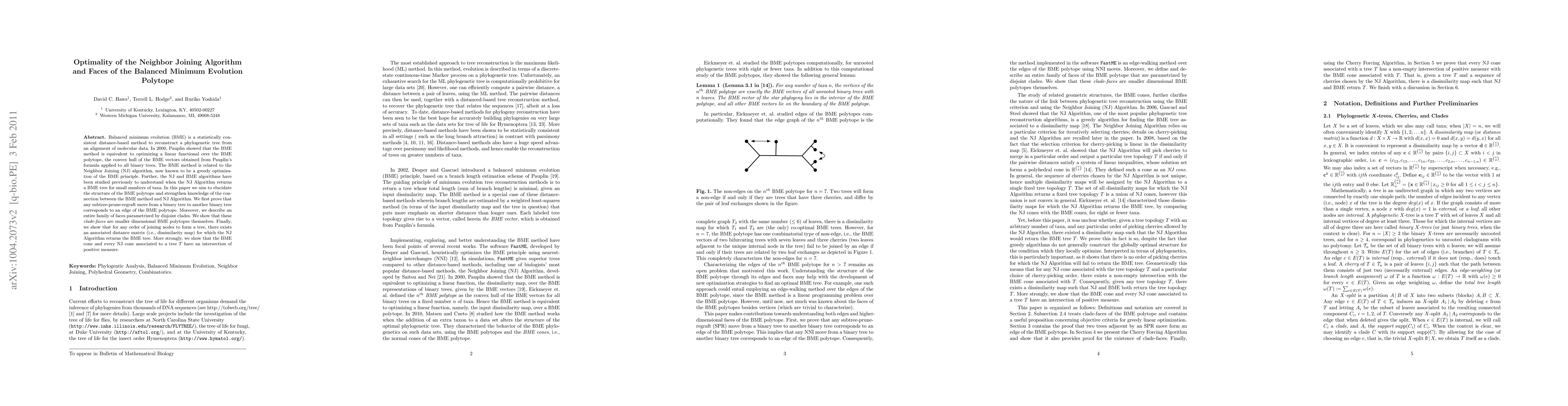 This research paper investigates the Neighbor Joining algorithm and its connection to the Balanced Minimum Evolution polytope, revealing new insights into their relationship and properties.