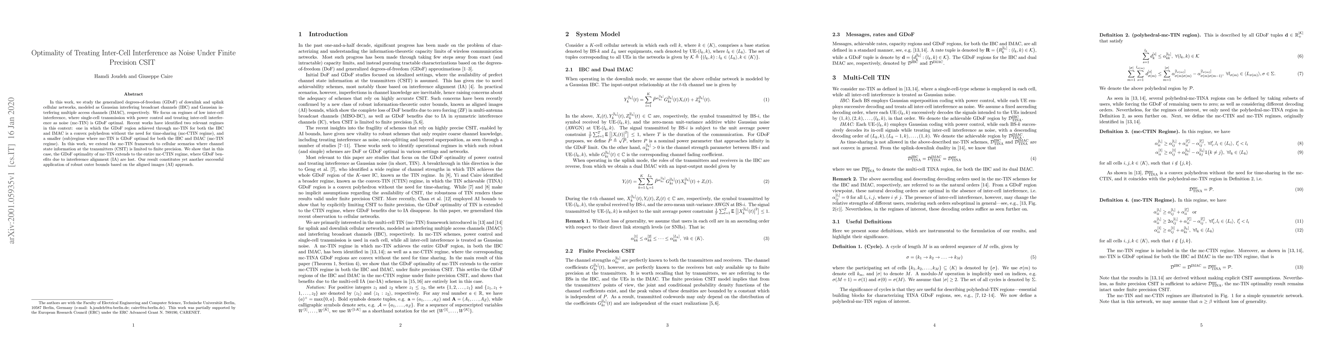 This paper investigates the generalized degrees-of-freedom (GDoF) in cellular networks under finite precision channel state information at the transmitters (CSIT). It demonstrates that treating inter-cell interference as noise (mc-TIN) remains GDoF optimal even in scenarios with limited CSIT, extending its optimality to the mc-CTIN regime.
